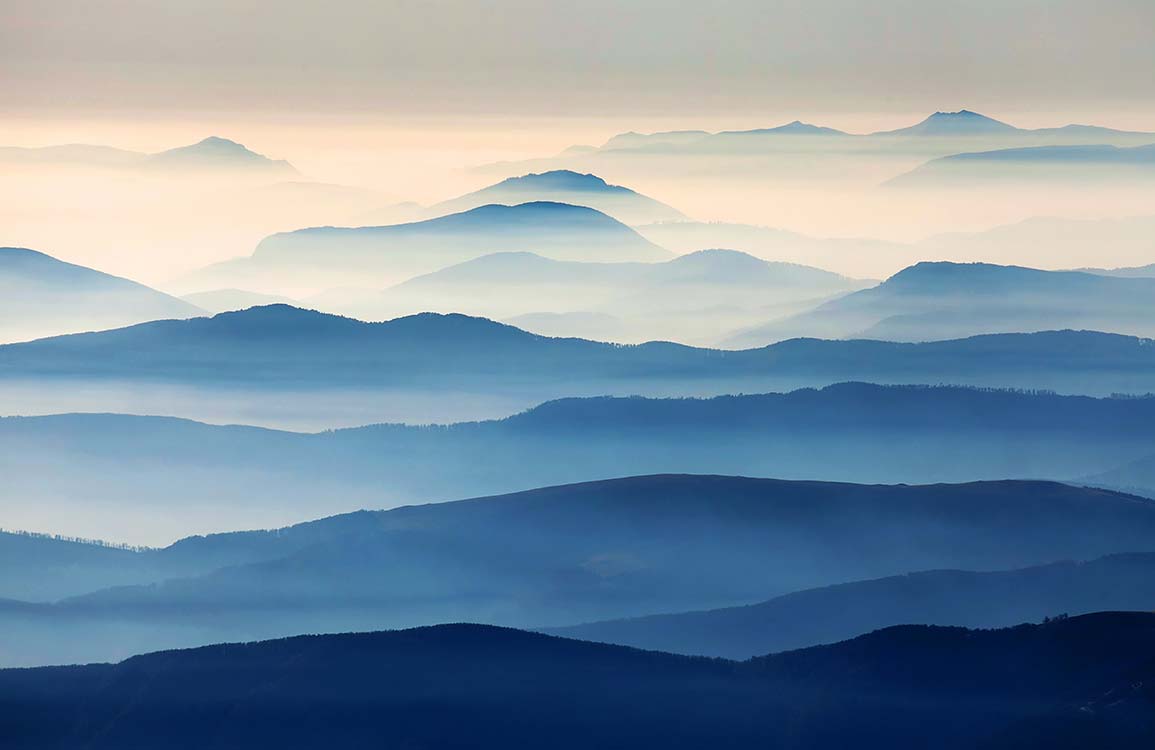 Create the perfect sanctuary for relaxing in your home with this blue mountainscape wallpaper mural. This bespoke wallpaper has been created by our in-house designer using creative water colour techniques, and this combined with the paper textures creates a design full of depth and intrigue. Level up your interior space with this water colour mountain painting wallpaper mural with Ever Wallpaper.