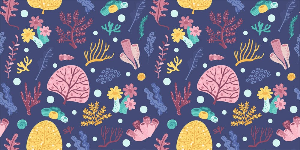 Drift off listening to the calming sounds of ocean waves and the soothing chime of a seashell. Our Sea Plants Wallpaper Mural proudly flaunts a playful pattern of clams, pearls, corals, and other underwater plants in bright and vibrant colours. This modern wallpaper will give the feeling of being underwater, making it perfect for your kids' room and playroom, especially for children who just love and adore water! Just peel and stick this easy-to-apply decal to instantly create a customized look in minutes.