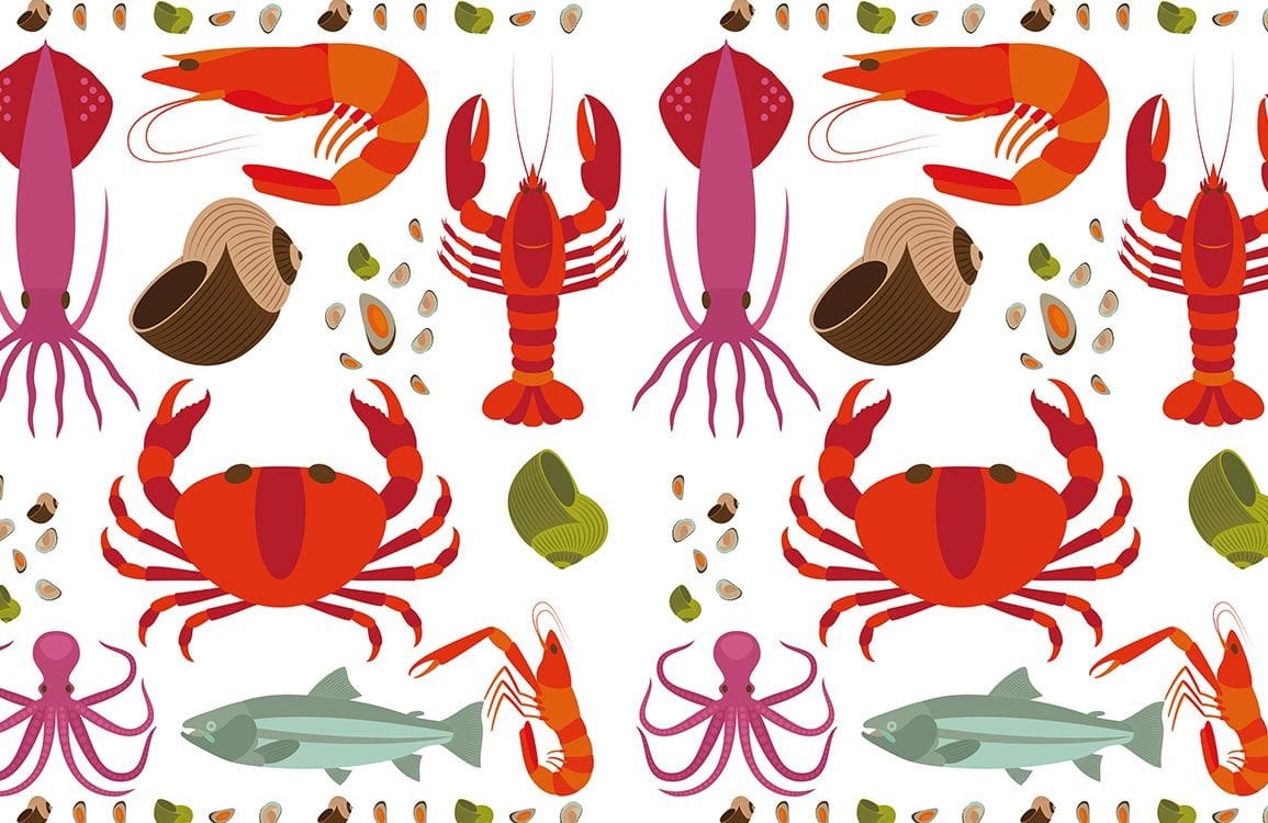 Dive into a sea of vibrant artistry with our Seafood Wallpaper Mural, where intricate depictions of lobsters, crabs, and fish create a lively yet sophisticated coastal ambience. Perfect for spaces aiming to capture the refreshing spirit of the sea, this mural brings an illustrative charm that blends seamlessly with both modern and eclectic decor.