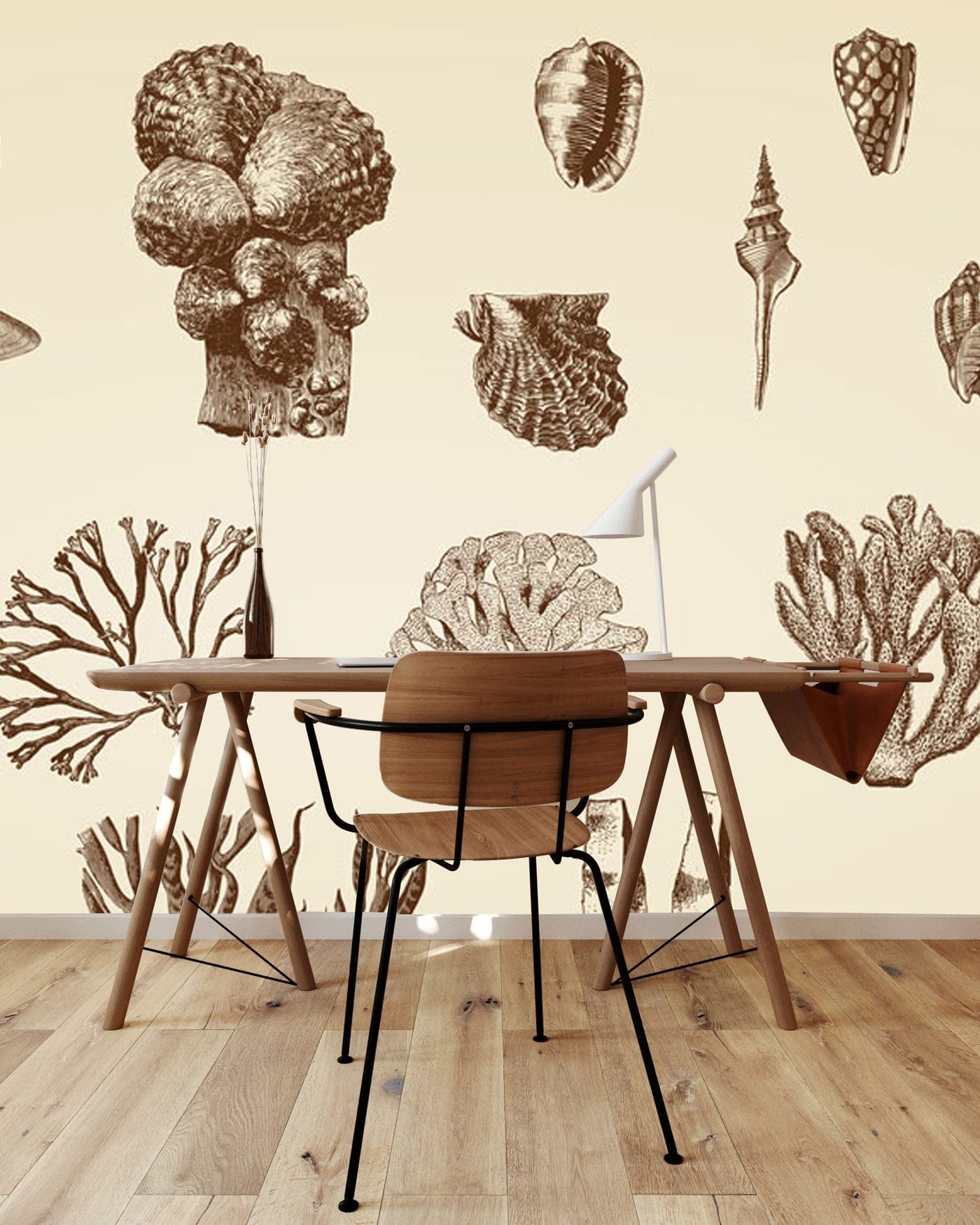 This Seashell & Coral Wallpaper Mural beautifully captures the intricate artistry of oceanic treasures. Featuring detailed illustrations of shells and coral against a soft background, it brings a touch of coastal elegance into any room. The mural's timeless design and exquisite detail create a serene and sophisticated backdrop, perfect for various interior styles and spaces.
