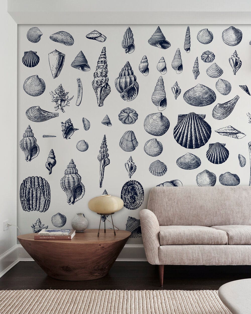 Immerse yourself in the allure of coastal elegance with the Seashell Specimen Wallpaper Mural. This intricate design captures the delicate contours of seashells, evoking a serene, natural beauty. The monochromatic palette enriches interiors with a sophisticated ambience, offering a timeless appeal that suits a broad range of decor styles, from classic to contemporary.