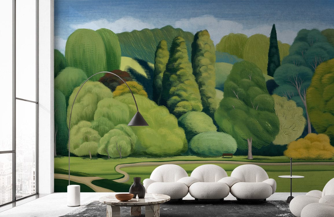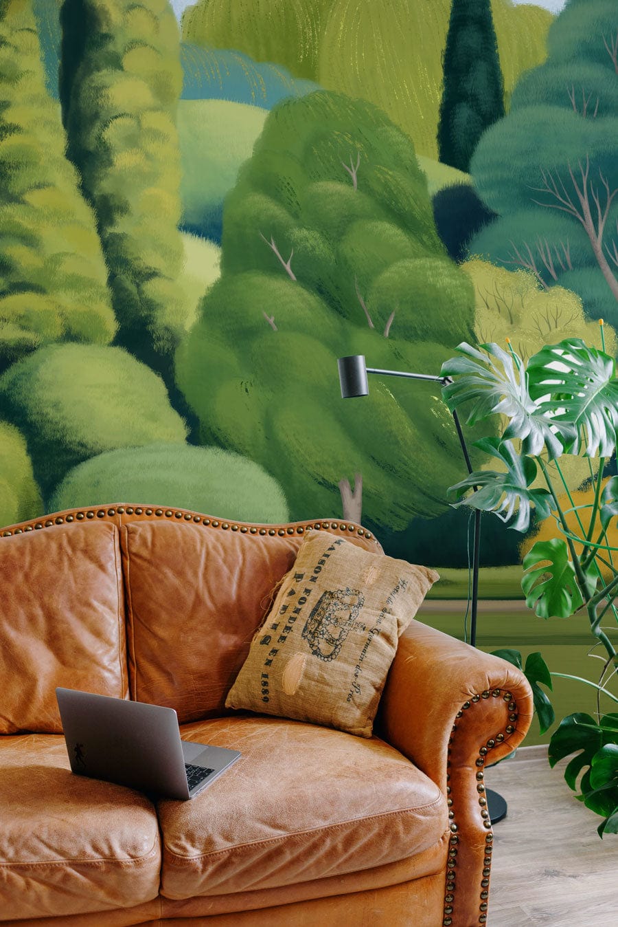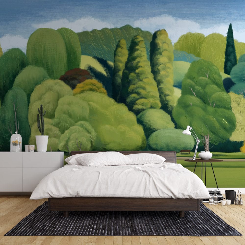 Embrace the tranquillity of the great outdoors with the Serene Forest Landscape Nature Wallpaper, featuring a skilfully painted panorama that infuses any room with the peacefulness of lush greenery and gentle foliage. Its delicate brushstrokes and harmonious palette evoke a timeless elegance, making it a perfect backdrop for your sanctuary. Whether gracing a modern lounge or classic study, this wallpaper complements various aesthetics while inviting a touch of nature indoors.