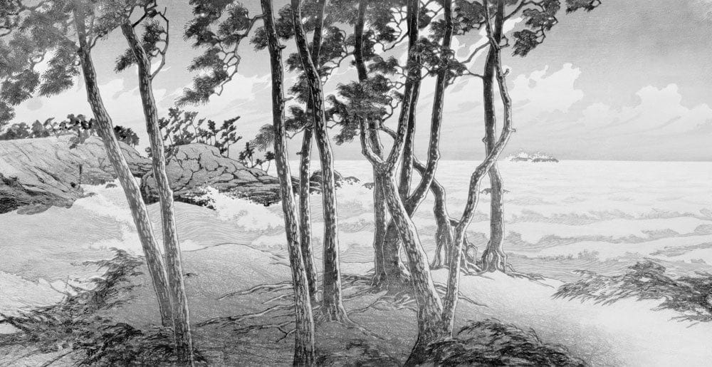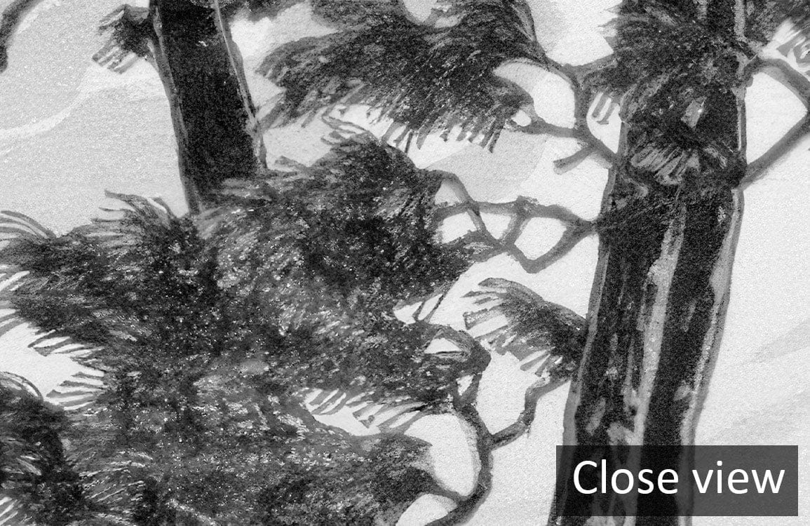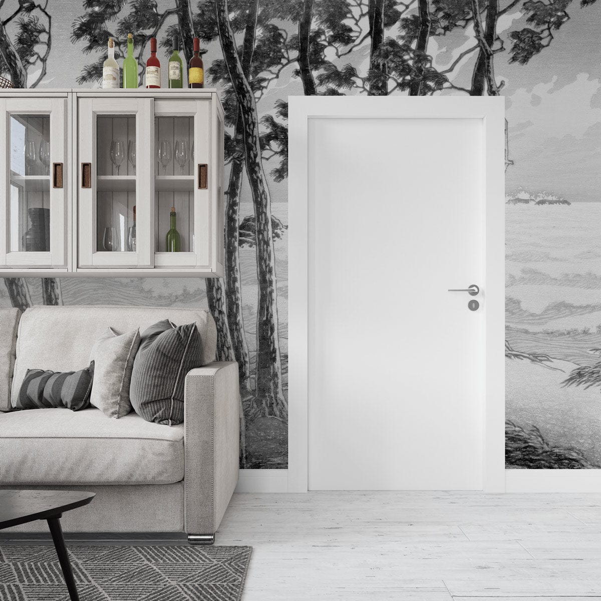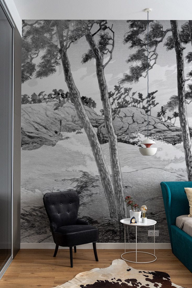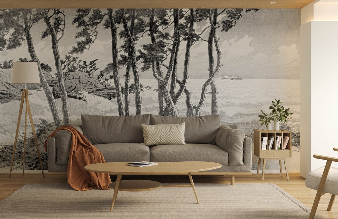 The Serene Waterscape Reflection Mural Wallpaper breathes life into your interior with its intricate depiction of tranquil waters and commanding trees. The monochromatic palette captures the depth of the scene, bringing a timeless and sophisticated atmosphere to any space. Its detailed lines and gentle contrasts create an ambience of calm and introspection, making it an ideal addition to homes seeking elegance and serenity.