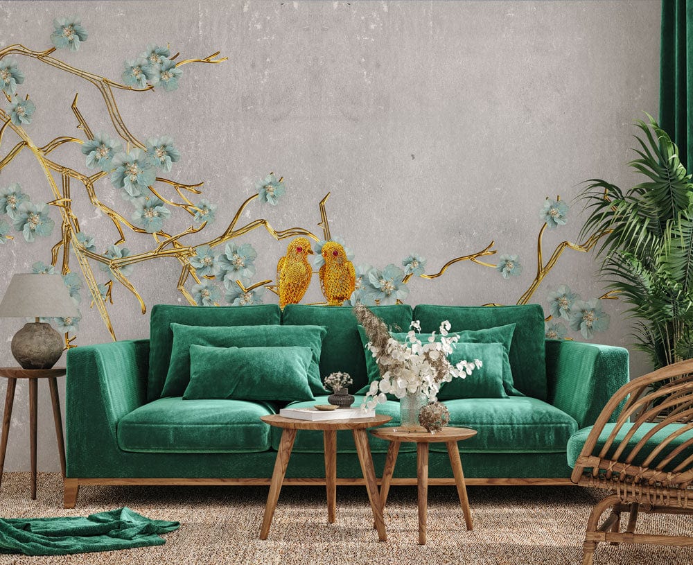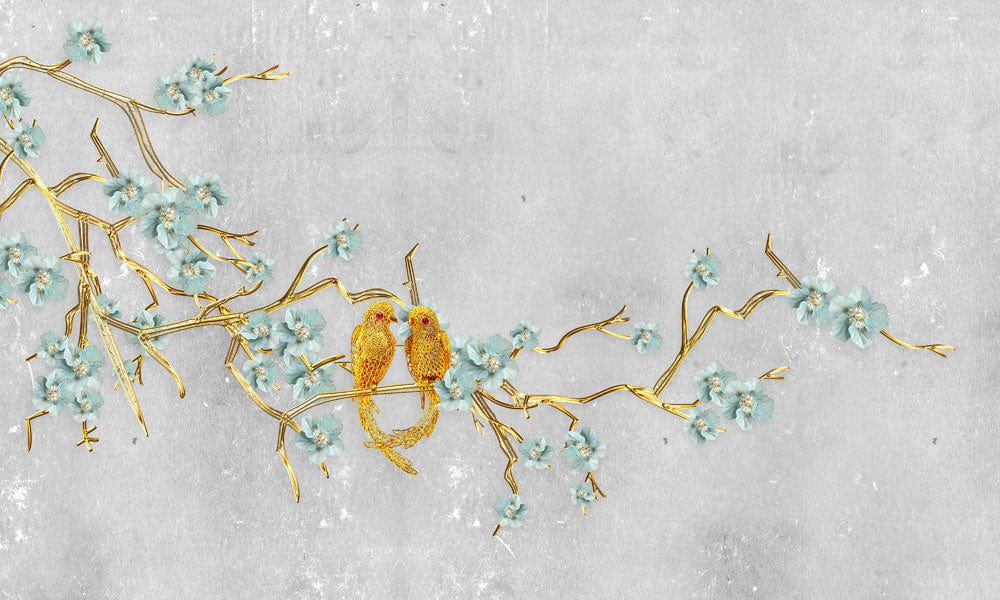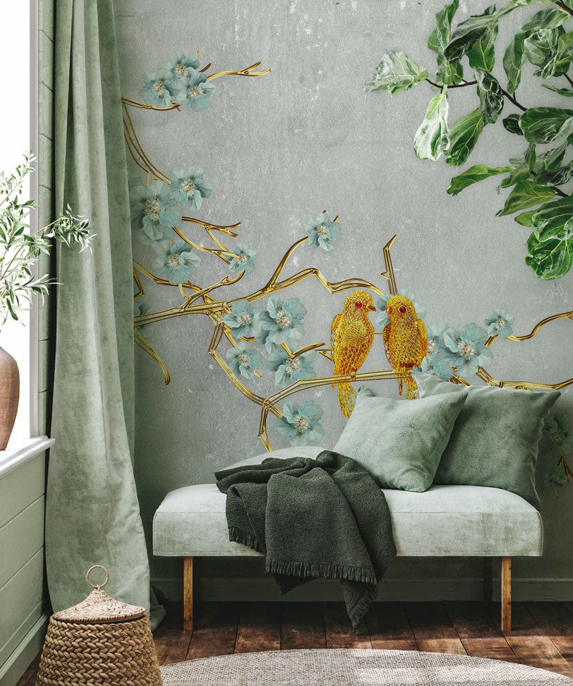 The Sharp Golden Branch Wallpaper Mural exudes an exquisite blend of nature and artistry. Delicately detailed golden branches interweave with soft blossoms in pale blue, creating a serene tapestry that evokes a sense of whimsy and elegance. Perfectly suited for a variety of interior settings, this mural adds a touch of artistic charm and sophistication to any space.
