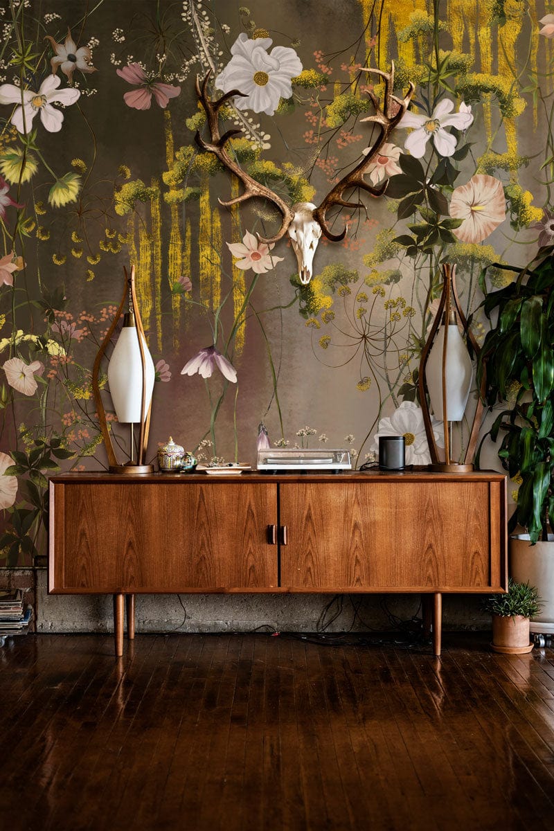 The Shinning Floral Vines Wallpaper Mural captures the ethereal beauty of a blossoming garden with intricate details and a cascade of delicate flowers. This mural's design merges timeless floral motifs with a modern touch, creating an exquisite tapestry of nature's splendour. Perfect for adding a touch of sophistication, it can grace the walls of both classic and contemporary settings, offering a serene and elegant backdrop.