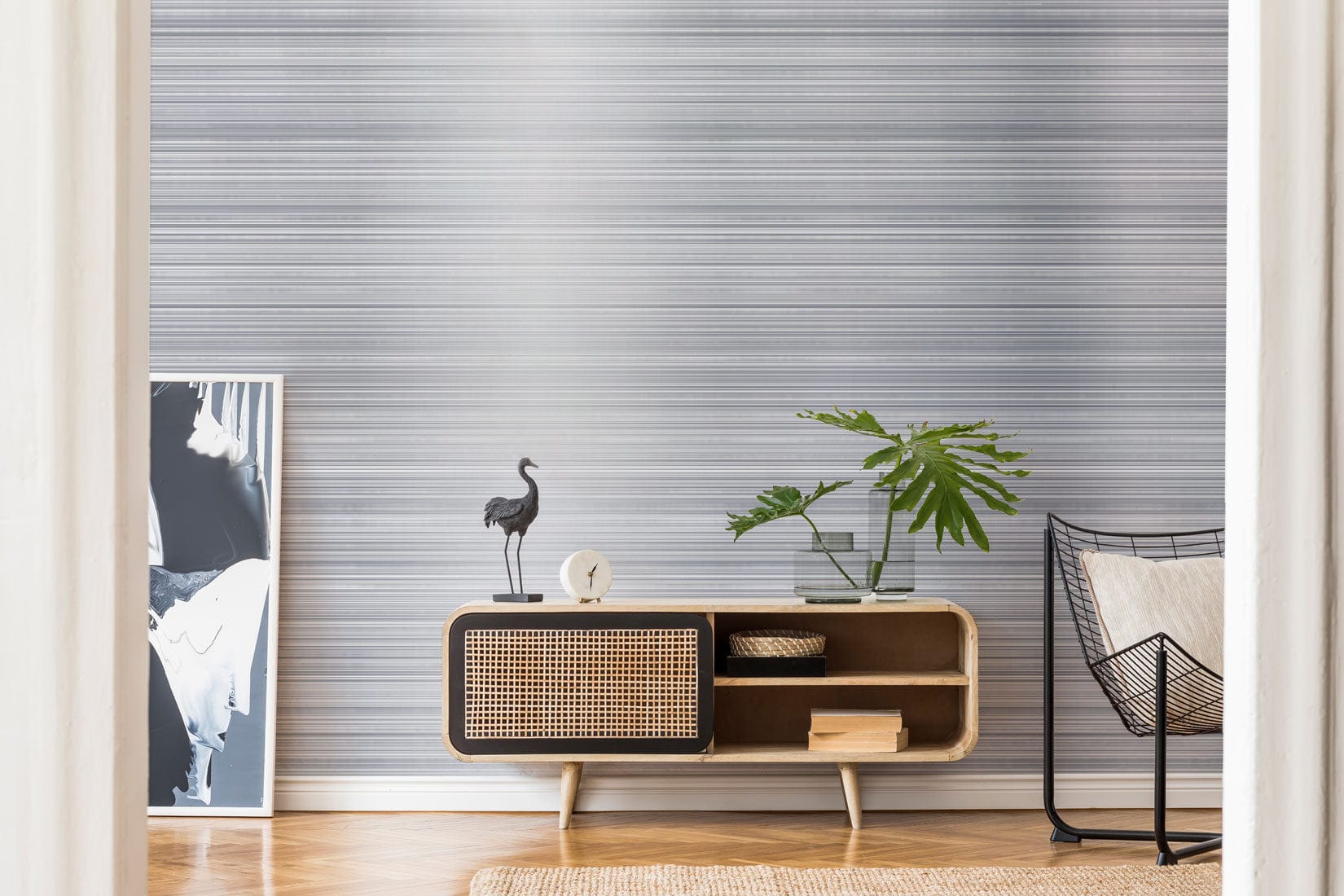 Immerse your space in a modern allure with our Silver Brushed Metals Wallpaper Mural. Delicate horizontal strokes create a textured metallic effect, echoing a refined simplicity that adds depth and dimension. Whether paired with contemporary furnishings or classic décor, its sleek tones offer a sophisticated backdrop, infusing any room with a subtle yet impactful elegance.