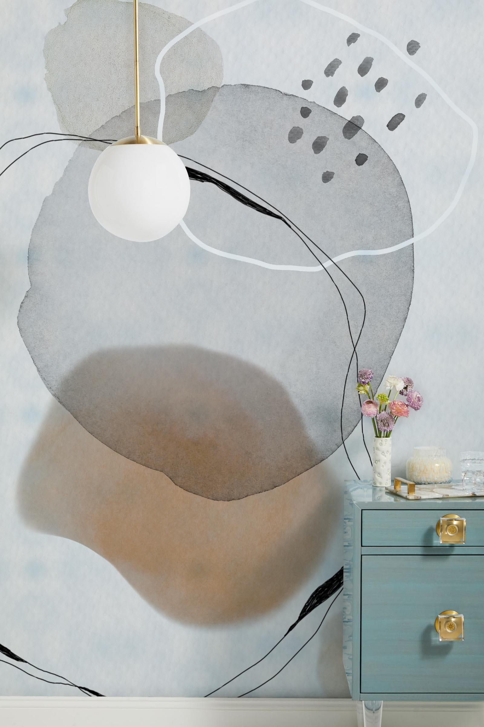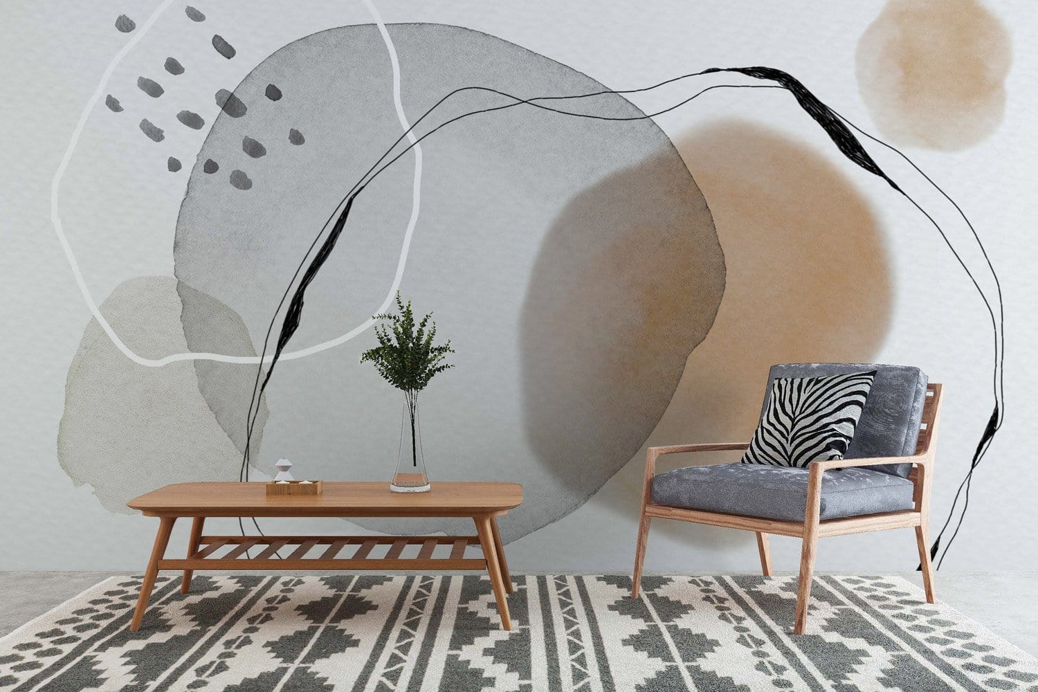 This simple wallpaper mural is designed with abstract and random lines, dots and circles. The combination of pastel grey, latte brown, black with neutral background tone makes the whole wallpaper looks really soft and comfortable. Use A perfect modern wall decoration that will fit all your bedroom, bathroom, kitchen, dining room and hallway.