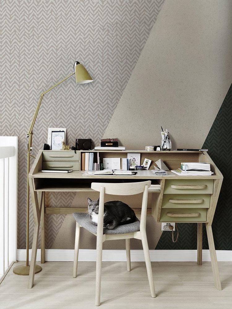 Upgrade your space with this unique designs of geometric colour block wallpaper mural. Let the olive green contrasted beige and white tones give your room a fresh twist. Choose it if you want to give your space an uber-modern appearance. Ideal wallpaper mural to pair with modern furniture styles in your bedroom, living room or dining area.