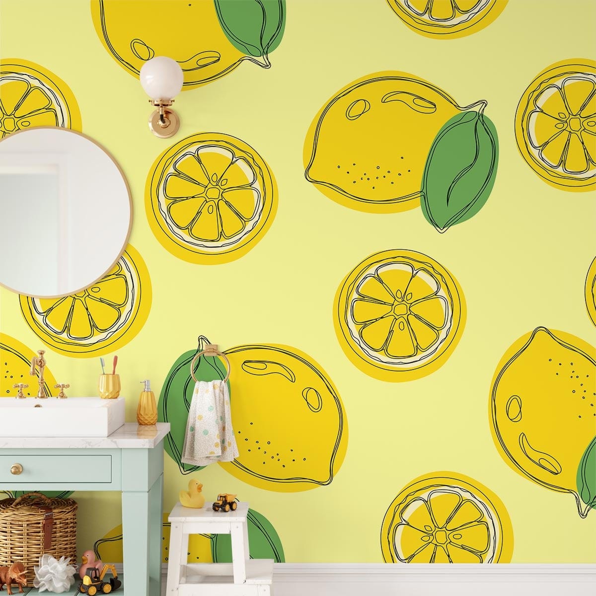 Dress up your walls with this Sketch Lemon Wall Mural, a trendy way to decorate your home. This fun lemon wallpaper features an eccentric design in a vivid yellow hue of brightly cartoon sliced lemons across it. It's handcrafted from premium eco-friendly materials that will surely brighten up any space. This fruit wallpaper can be folded up and hung on a wall as artwork or removed from its backing to transform your blank walls into beautiful works of art in minutes, making it perfect for the kitchen and nursery.