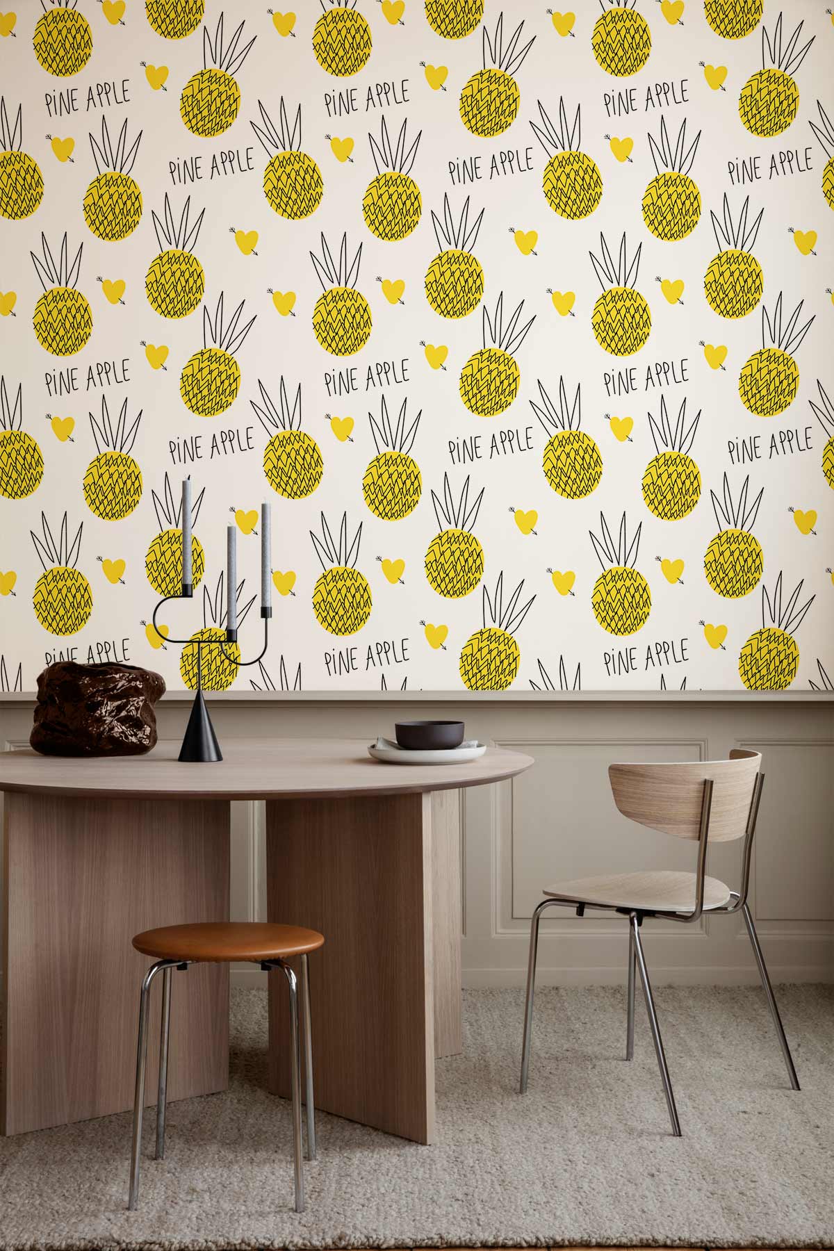 Change the theme at your place with a very bright refreshing mural wallpaper and make the place so vibrant and so fresh. With pure yellow pineapple mural wallpaper with the creamy white background your caf茅 will look so energetic and will be full of life. You can also choose this mural to renovate your bedroom with a very modern design that will make your room look so happy and full of positivity. The pallet of the design is so lite and will make the place look wider. Use light shades in decorations to keep the style so simple and chic