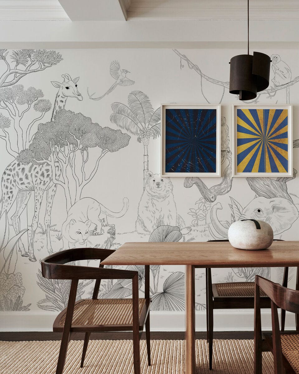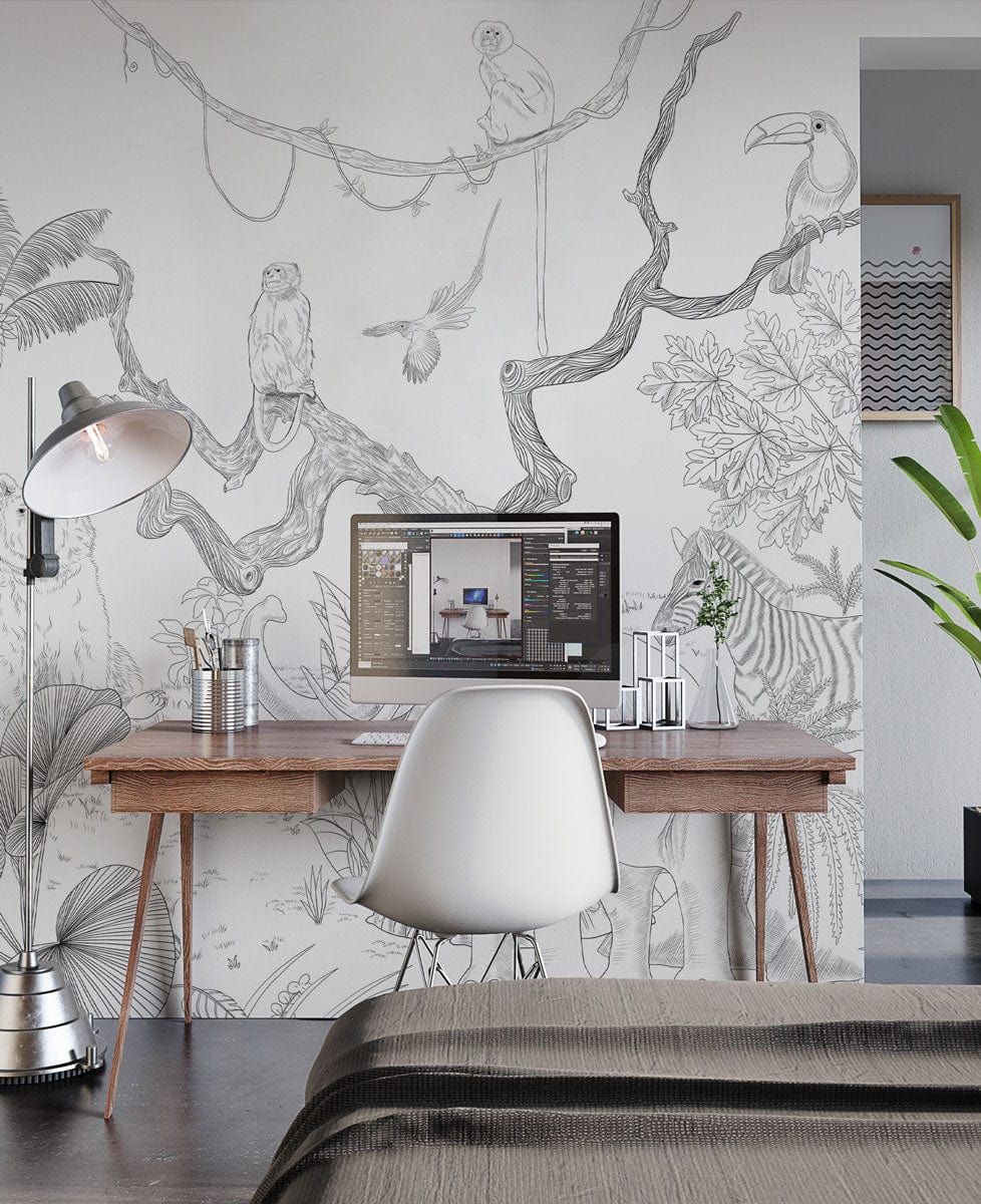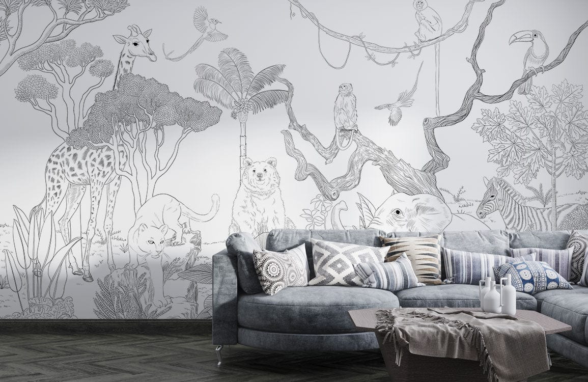 Invite the wild elegance of nature into your home with the Sketched Animals Wallpaper Mural. This intricate design features finely drawn creatures amidst lush foliage, offering a serene yet sophisticated aesthetic. Perfectly capturing the timeless beauty of delicate line art, it adds depth and artistic charm to any setting, creating a harmonious blend of artistry and nature.