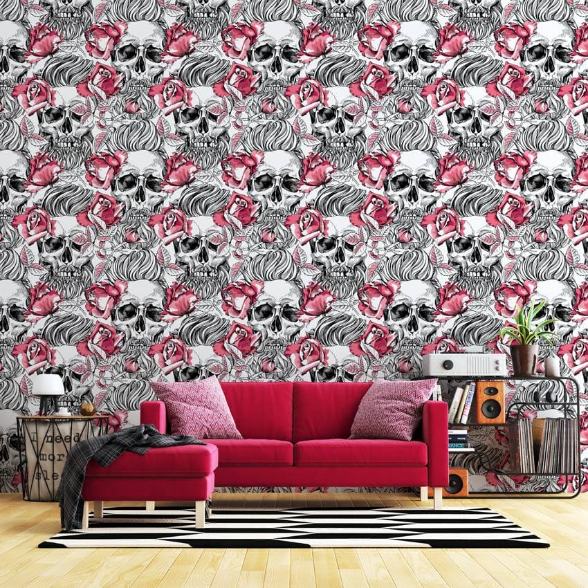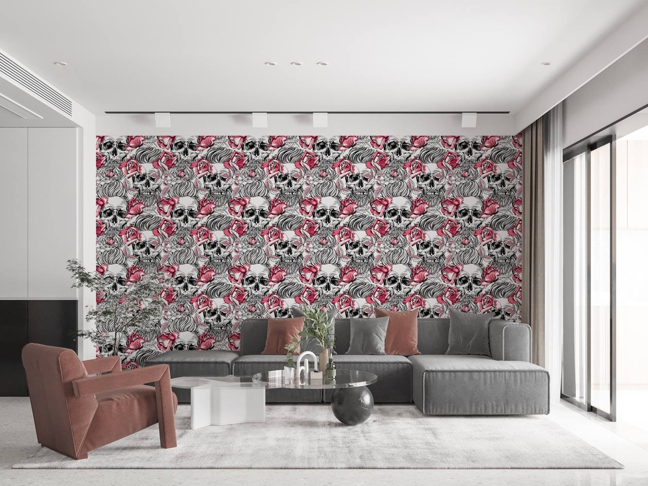 Introduce a striking focal point to your interiors with the Skull Rose Elegance Mural Wallpaper. This wallpaper features an intricate interplay of delicate skull motifs intertwined with graceful rose patterns, creating a stunning visual harmony. The detailed artistry is captured in rich hues, bringing a sense of bold sophistication to any room. Suitable for both contemporary and vintage-inspired settings, it invites admiration with its timeless aesthetic, making it an ideal choice for spaces that seek to blend modern edge with classic elegance.