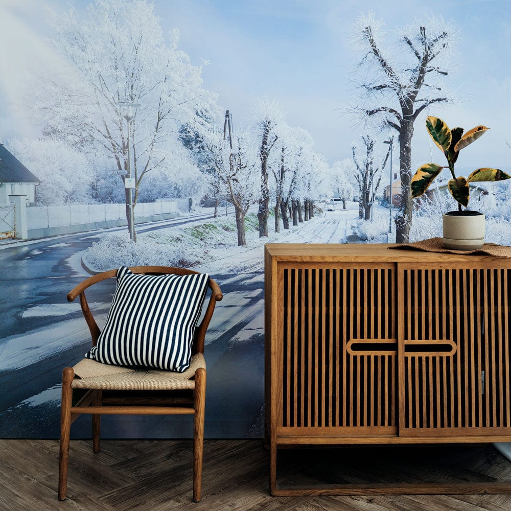 Immerse yourself in the serene elegance of the Snow Countryside Road Wallpaper Mural, where frosted landscapes and a tranquil path evoke a sense of quiet charm and timeless beauty. The intricate details of the snow-dusted trees and gentle curves of the road capture the essence of a winter's day, bringing a touch of sophistication to any room. Its delicate textures and soft colour palette create an inviting atmosphere, perfectly suited for both contemporary and classic interiors.