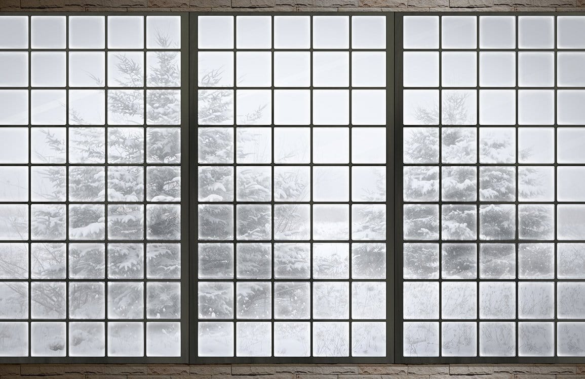 Immerse your space in a serene winter scene with the Snow Trees Wallpaper Mural, capturing the tranquil elegance of snow-draped evergreens through a grid of timeless windowpanes. The refined design lends an air of sophistication to any room, inviting both light and calmness, while evoking the gentle hush of a snowy landscape. With its delicate balance of texture and clarity, this mural finds harmony between classic beauty and modern simplicity, suiting various interior themes.