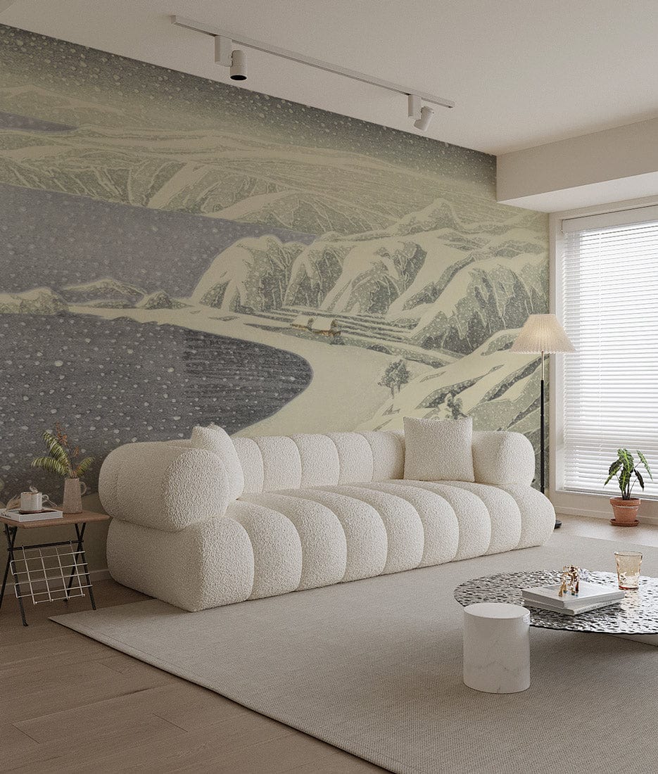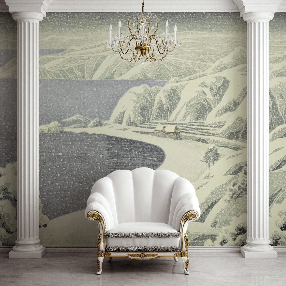 Immerse your space in the tranquil beauty of the Snowy Coastal Serenity Mural Wallpaper. Featuring a breathtaking seascape enveloped in delicate snowfall, this piece captures the sublime elegance of nature. The intricate detailing of the snow-laden cliffs and serene coastal vistas invites a sense of calm sophistication, making it a versatile choice for any refined interior setting.