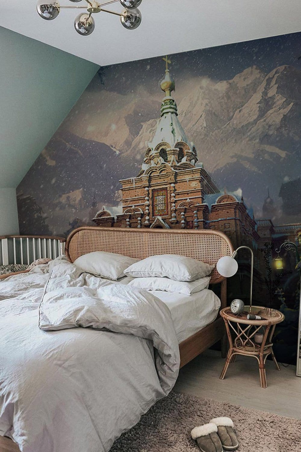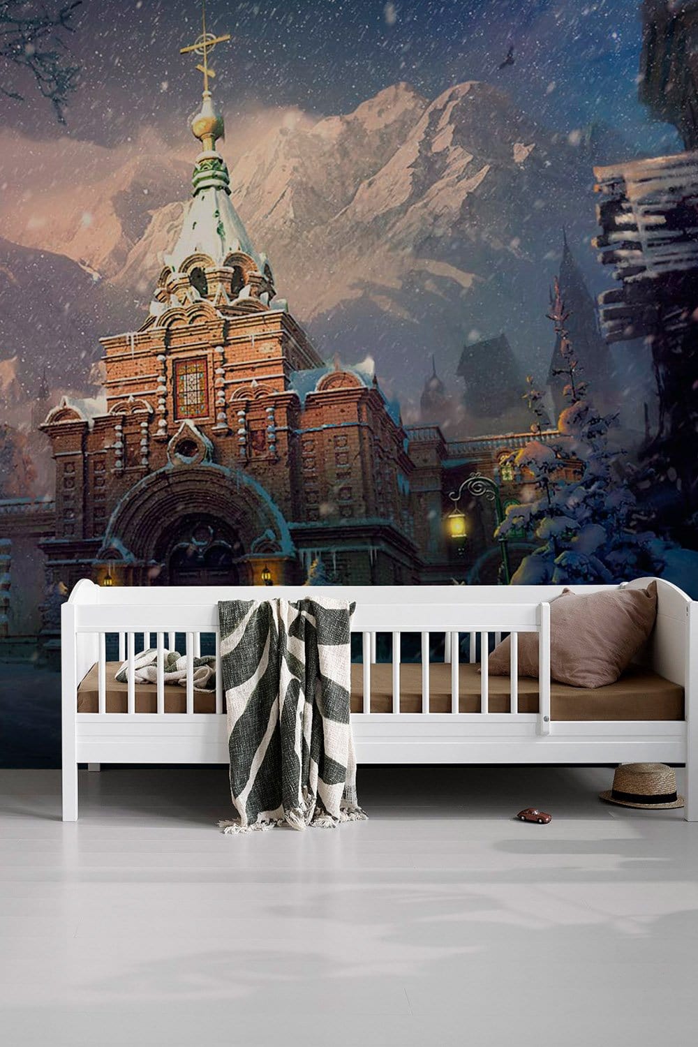 Immerse your space in the serene allure of a Snowy Night Wallpaper Mural, where intricate architectural details blend seamlessly with the tranquil beauty of snow-capped peaks. This elegant design captures the mystique of a winter landscape, infusing interiors with a refined, timeless atmosphere. Perfectly suited for those who appreciate rich textures and artistic finesse, this mural creates a captivating ambience in any room.