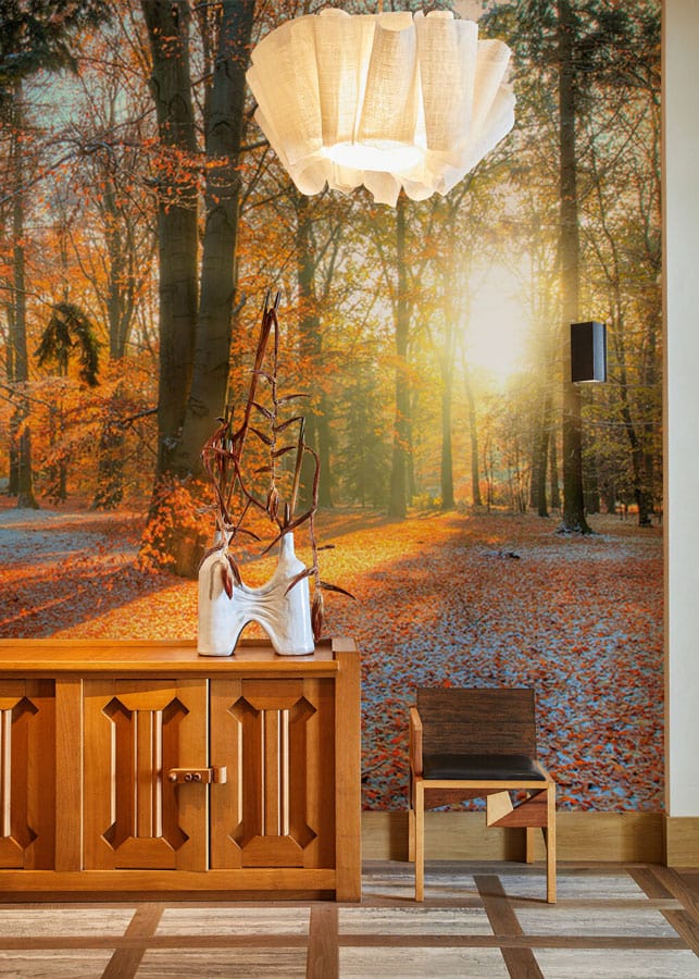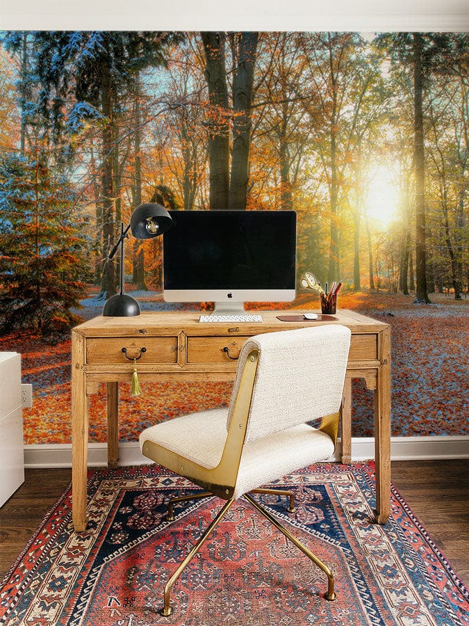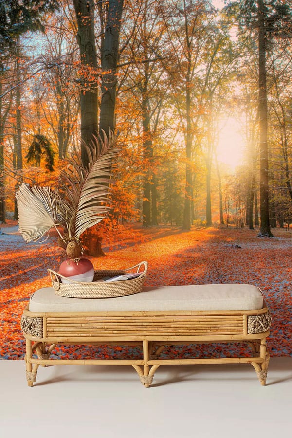 Immerse your space in the serene beauty of a winter wonderland with the Snowy Red Forest Wallpaper Mural. Featuring a breathtaking depiction of a sunlit forest blanketed in the crispness of frost, rich, fiery reds interplay with subtle greens and pristine whites, transforming any room into a tranquil escape. This exquisite mural marries art and nature, offering a sophisticated focal point ideal for both classic and contemporary interiors.