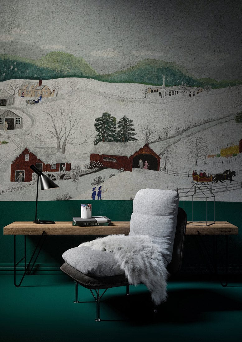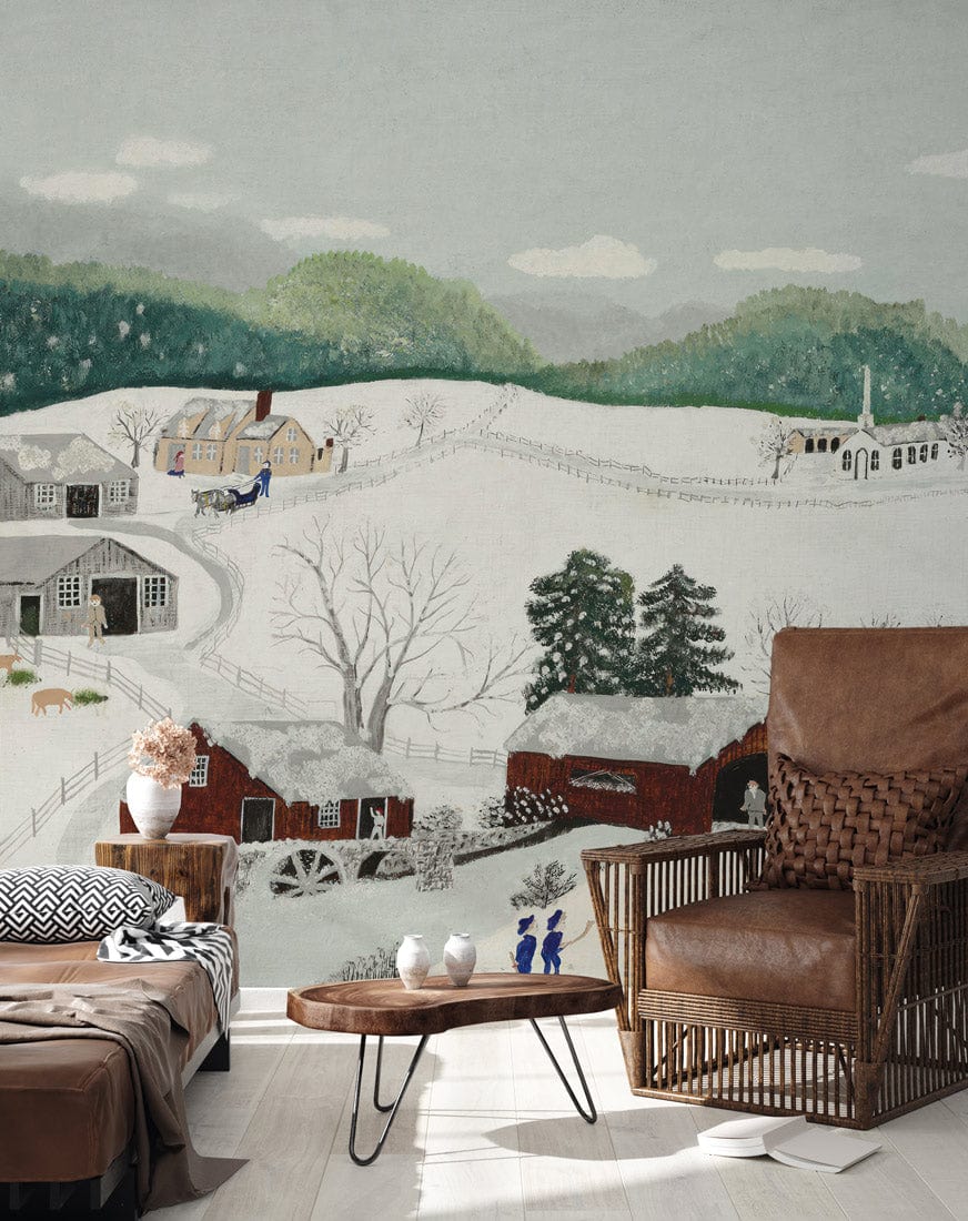 The Snowy Village Charm Mural Wallpaper invites you into a serene winter landscape, where quaint cottages and gentle hills create a picturesque tableau. Subtle brushstrokes depict snow-laden rooftops and frosty fields, capturing a timeless rural tranquillity. This mural's soft pastel tones enhance its ability to integrate seamlessly into diverse interiors, offering a sophisticated focal point that exudes warmth and nostalgia.