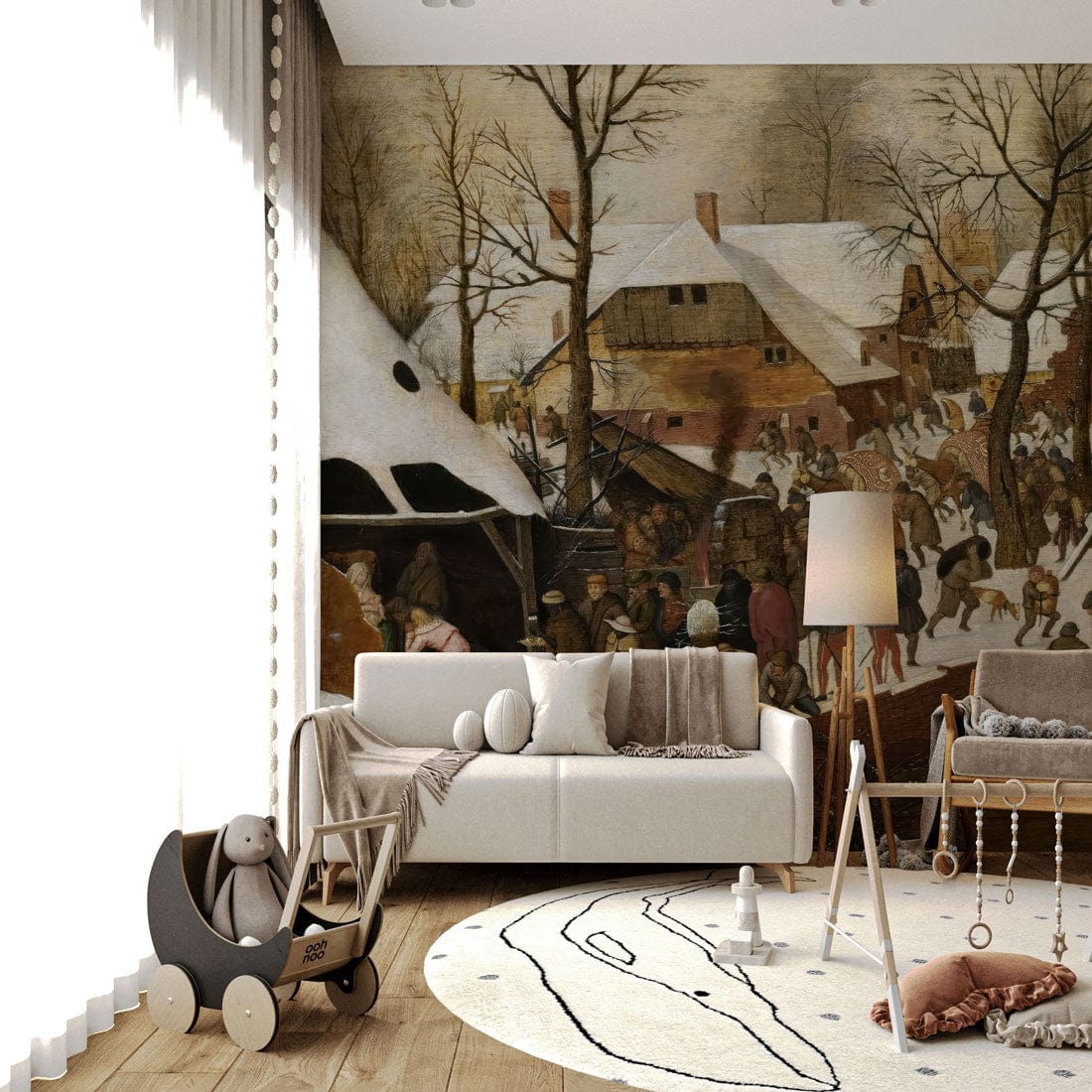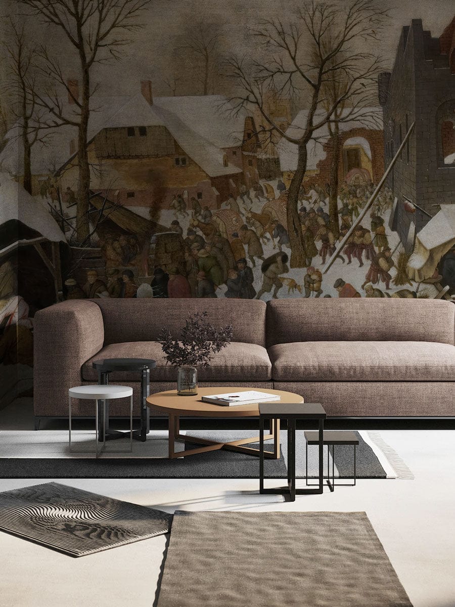 Immerse your space in the serene charm of a bygone era with the Snowy Village Nostalgia Mural Wallpaper. This exquisite piece captures the rustic elegance of an old-world winter scene, intricately detailed with quaint cottages, frosted trees, and a gentle flurry of snow. The soft palette of muted earth tones and gentle whites creates a harmonious backdrop, evoking warmth and history in any room. Ideal for settings that seek sophistication and a narrative touch, this mural brings stories and a sense of calm to your walls.