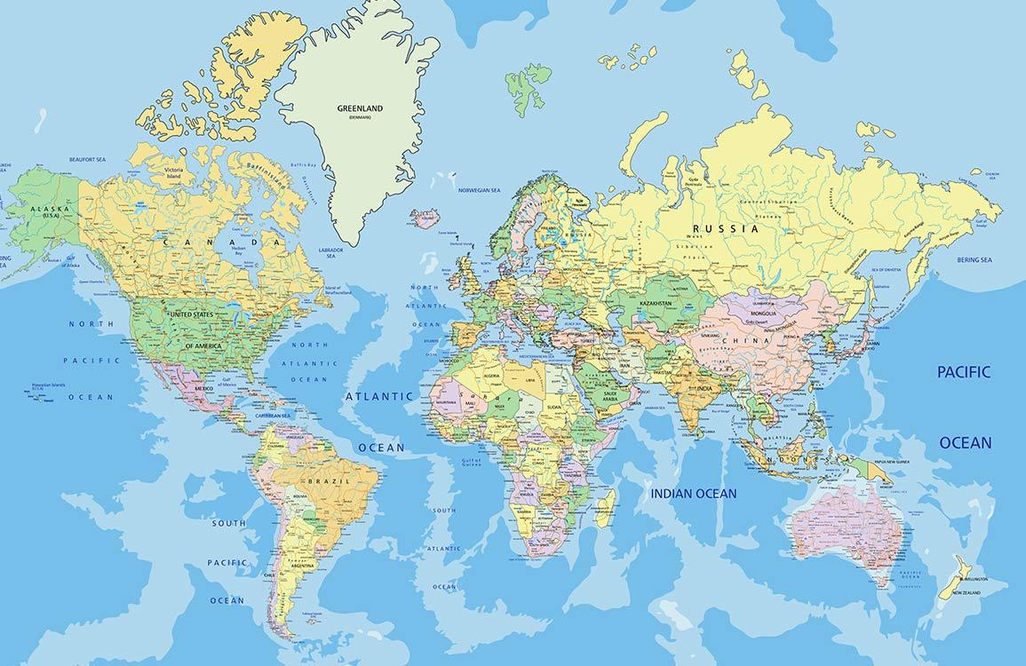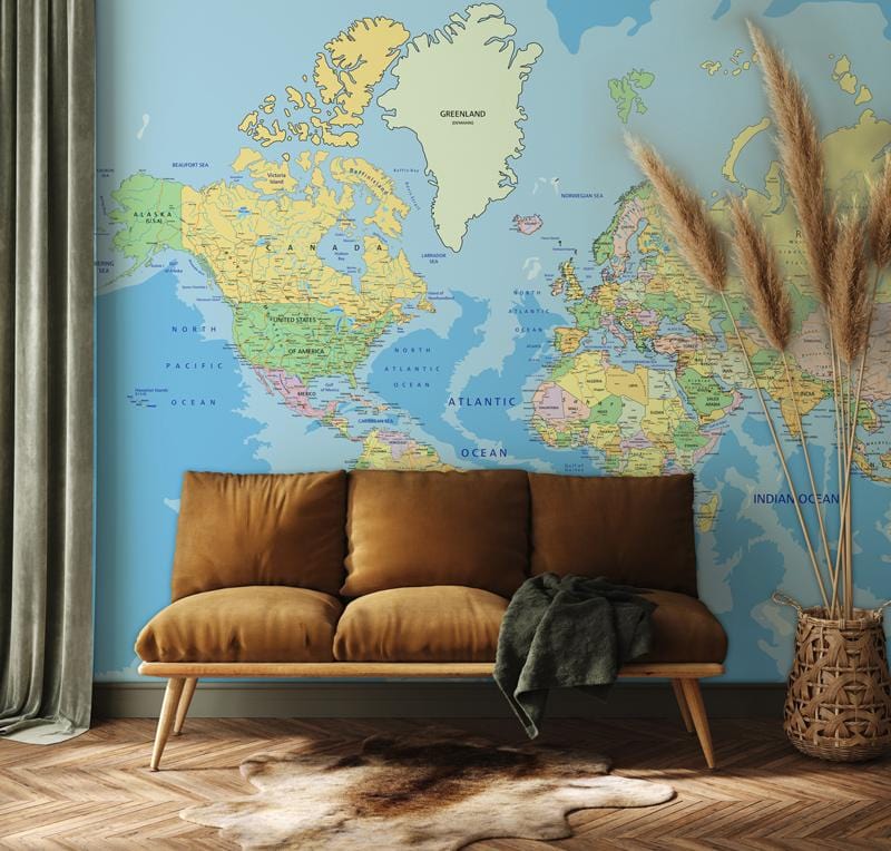 Know this world from A to Z with this custom-made map wallpaper mural. This on-trend map of the world is a fantastic background for your rooms. All of the countries and regions have been clearly detailed in this map. Suitable for all your home office, bedroom and hallway.