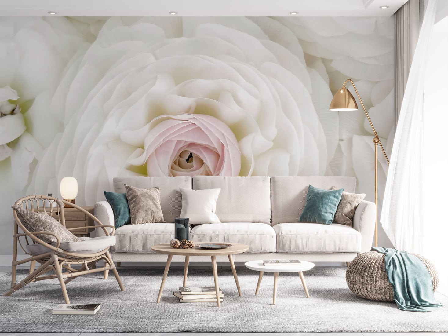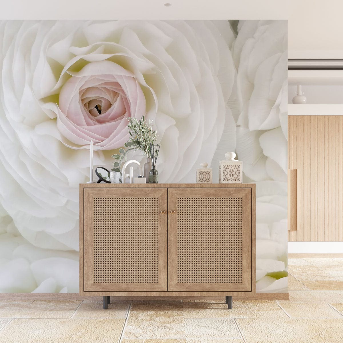 Immerse your space in the delicate allure of the Soft Camellia Wallpaper Mural. The design showcases intricate blossoms with layers of soft petals, exuding sophistication and timeless grace. Its gentle palette of whites and pinks effortlessly weaves charm into any room, creating a serene and inviting atmosphere. Perfectly suited for both contemporary and traditional interiors, this mural adds a touch of refined elegance that's versatile and captivating.