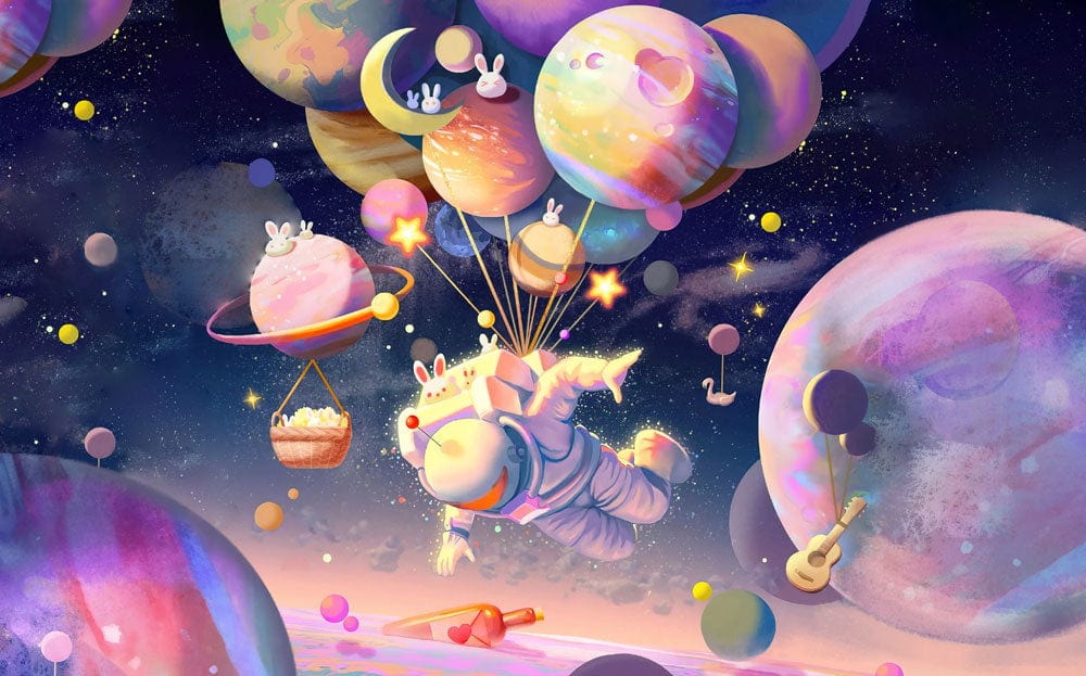 Breathe life into your space with the Space Bunny Gifts Wallpaper Mural, where an astronaut floats among whimsical planets and playful bunnies. The celestial charm is brought to life through a symphony of swirling colours and intricate details, making it adaptable to both contemporary and eclectic interiors.