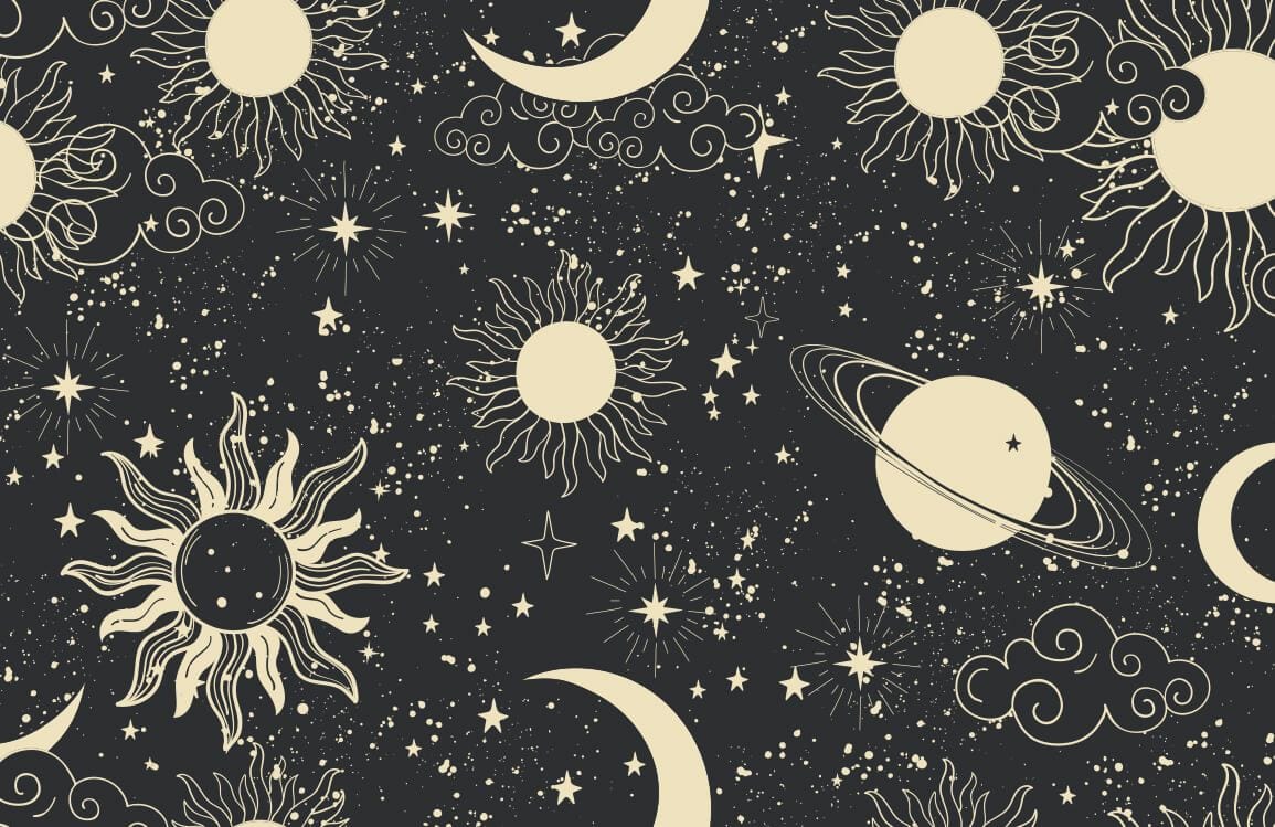 Embark on a celestial journey with this Space Wallpaper Mural, where intricate astral motifs dance across a richly detailed canvas. The swirling suns and orbiting planets exude an otherworldly charm, perfect for crafting a sophisticated interior ambience. The mural's deep, inviting tones create an expressive backdrop that marries elegance with cosmic wonder, seamlessly fitting into both modern and vintage-inspired spaces.