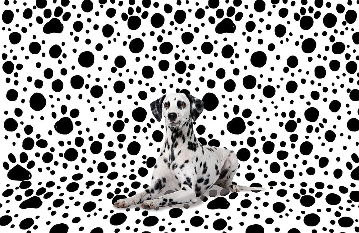 Anyone searching for a lively, vivid, and cheery solution to brighten up their walls will love this Spotted Dog Wallpaper Mural. This trendy design depicts a black and white spotted Dalmatian dog sitting against a dotted black and white background.聽The texture of this image聽is unique, or should I say purrfect for any space in your house that needs a distinctive form of art. This聽statement wallpaper will聽make聽all the difference in a kid's room, playroom, or kitchen.