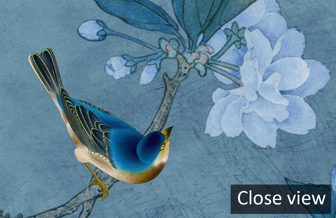 Dream and let your mind fly to the horizons of the infinity. We are here with our unique collection of freedom and simplicity to let your place vibe up with modernity and elegancy at the same time. Our design with the ombre blue shades and the blue shades at the branch with the heaven bird flying freely with its marvelous sound will make your feel you are the heaven. The moon light at the left side makes it look like a clear sky night and calm view for relaxing mood. Use this mural wallpaper at any pale at your home and enjoy the positivity and elegancy and unleash your mind freely with these birds.