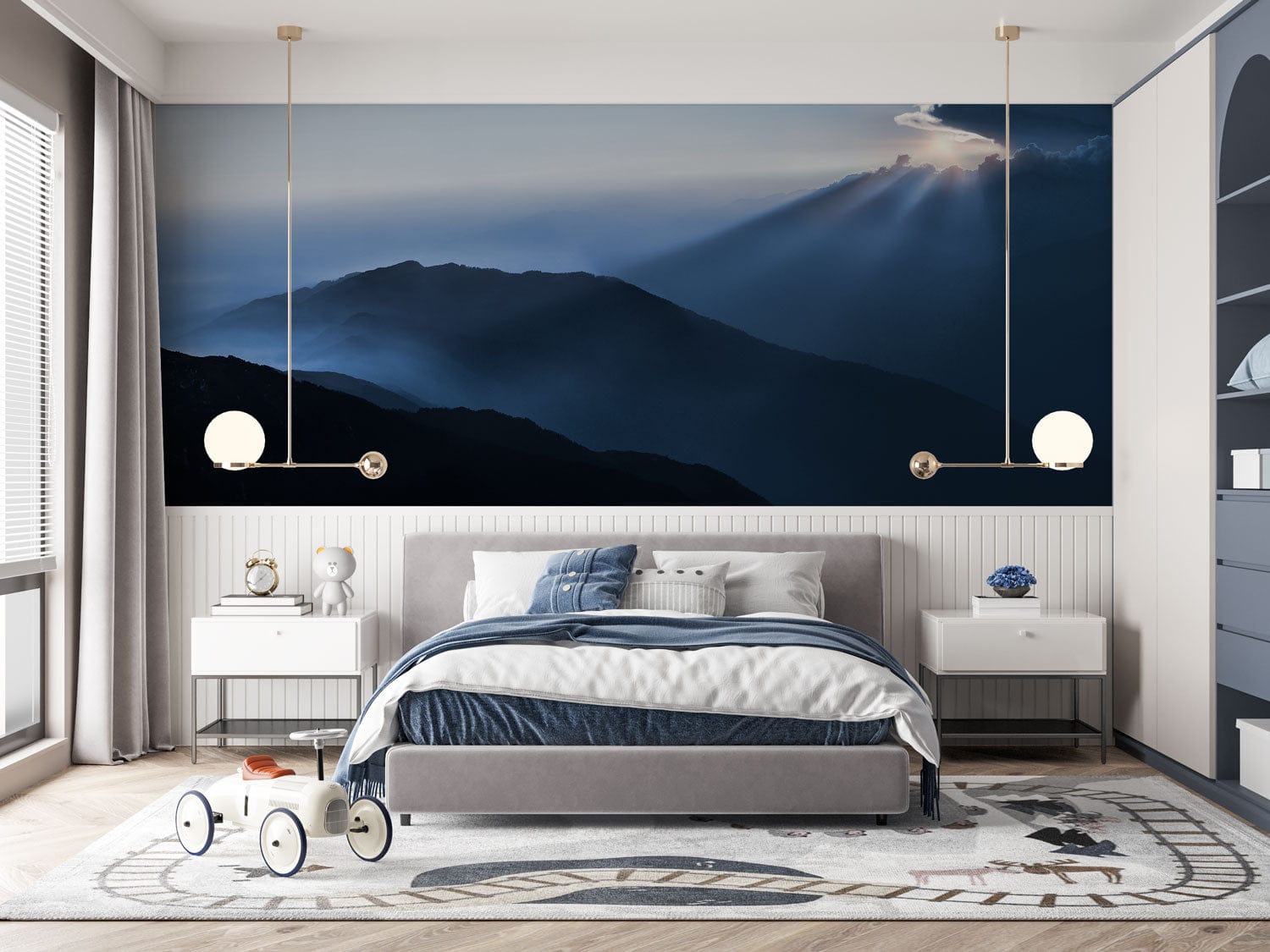 Sprinkling Sunshine Wallpaper Mural captures the serene essence of nature with its exquisite depiction of sunrays cascading over misty mountains. The interplay of light and shadow offers an inviting and tranquil ambience, making it a sophisticated addition to any interior. Perfectly suited for those who appreciate timeless elegance and artful simplicity, this mural effortlessly adorns any space with a touch of natural wonder.