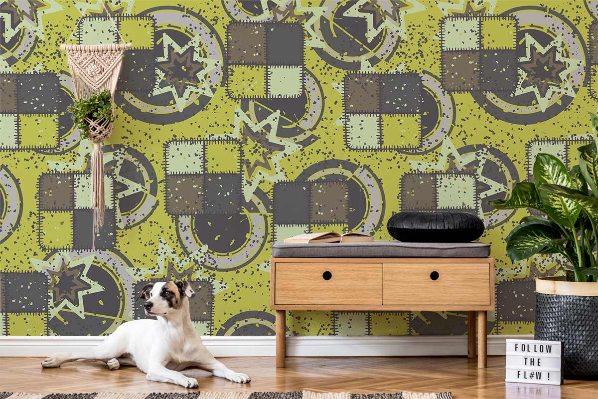 Escape the ordinality with this rightful wallpaper mural of star and squares. A unique design that will make your place look really different and full of life. This design is perfect for a very different looking living room with semi modern wooden furnishing. A mural wallpaper that will be perfect for your bedroom with light yellow chiffon curtains or off-white that will make your room look really lite and will widen the scale of the room.