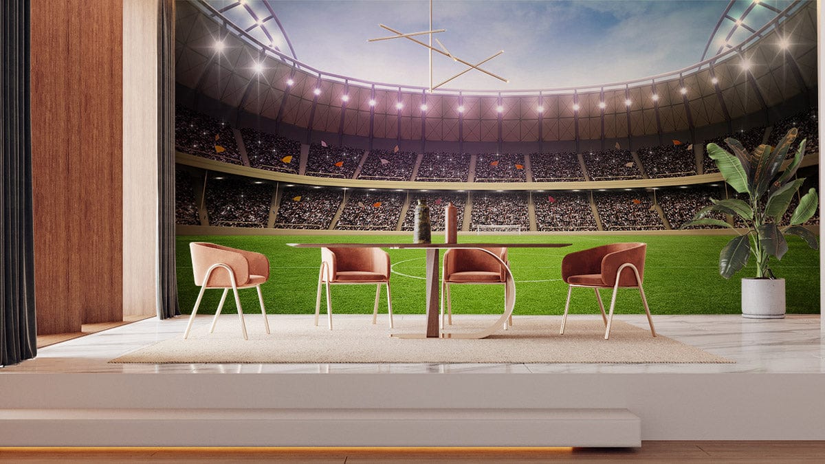 Stadium at Night Wallpaper Mural is the perfect addition to your sports-themed living room or bedroom. The modern design features an epic stadium surrounded by lights and an open field that will give your home the vibe of being at a sporting event while you're relaxing in your living room. This mural is perfect for anyone who loves to play or watch sports or just wants a unique look for their walls.