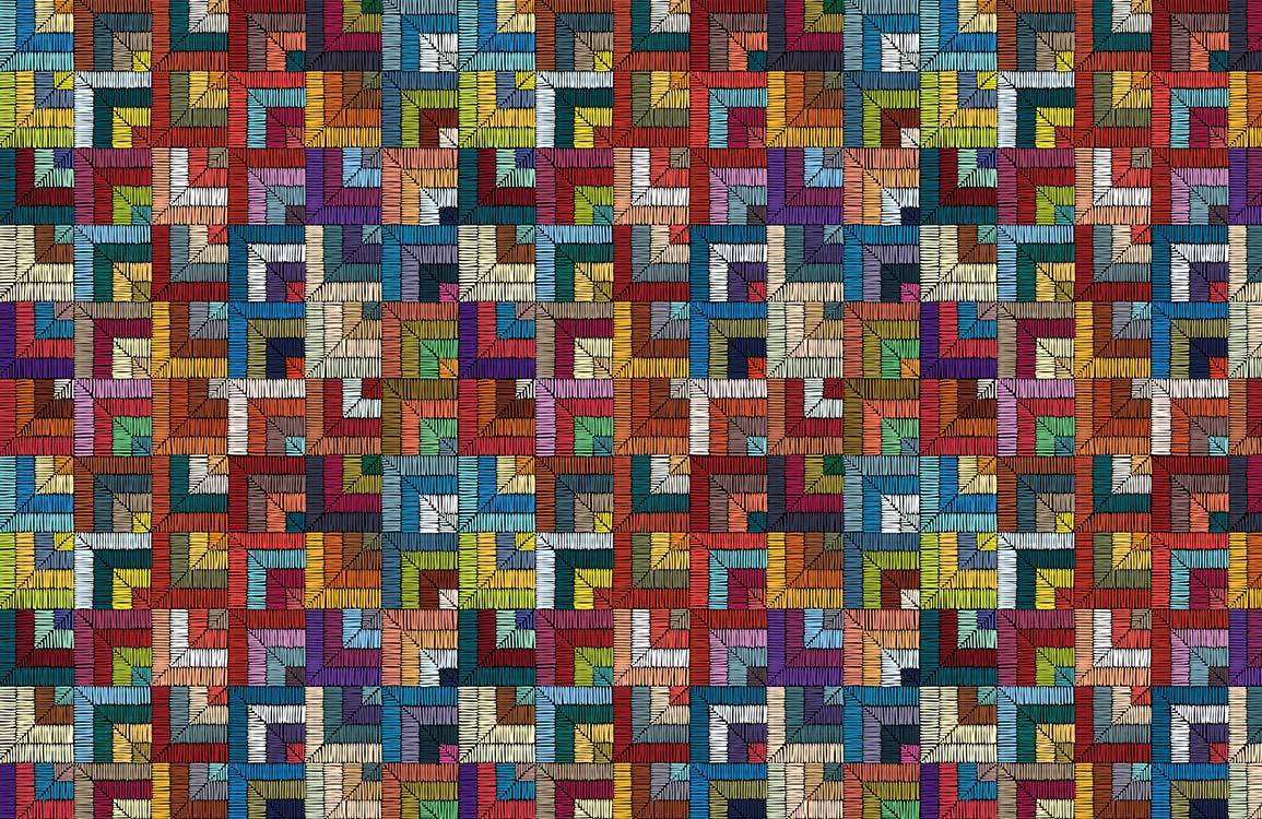 Immerse your space in the rich tapestry of the Stitchwork Wallpaper Mural, where intricate geometric patterns weave together a vibrant collage of colour and texture. Perfectly harmonising traditional craftsmanship with contemporary flair, this mural showcases a dynamic mosaic of intersecting shapes, capturing a timeless elegance. Its elaborate design invites warmth and character, making it an exquisite addition to any curated interior.