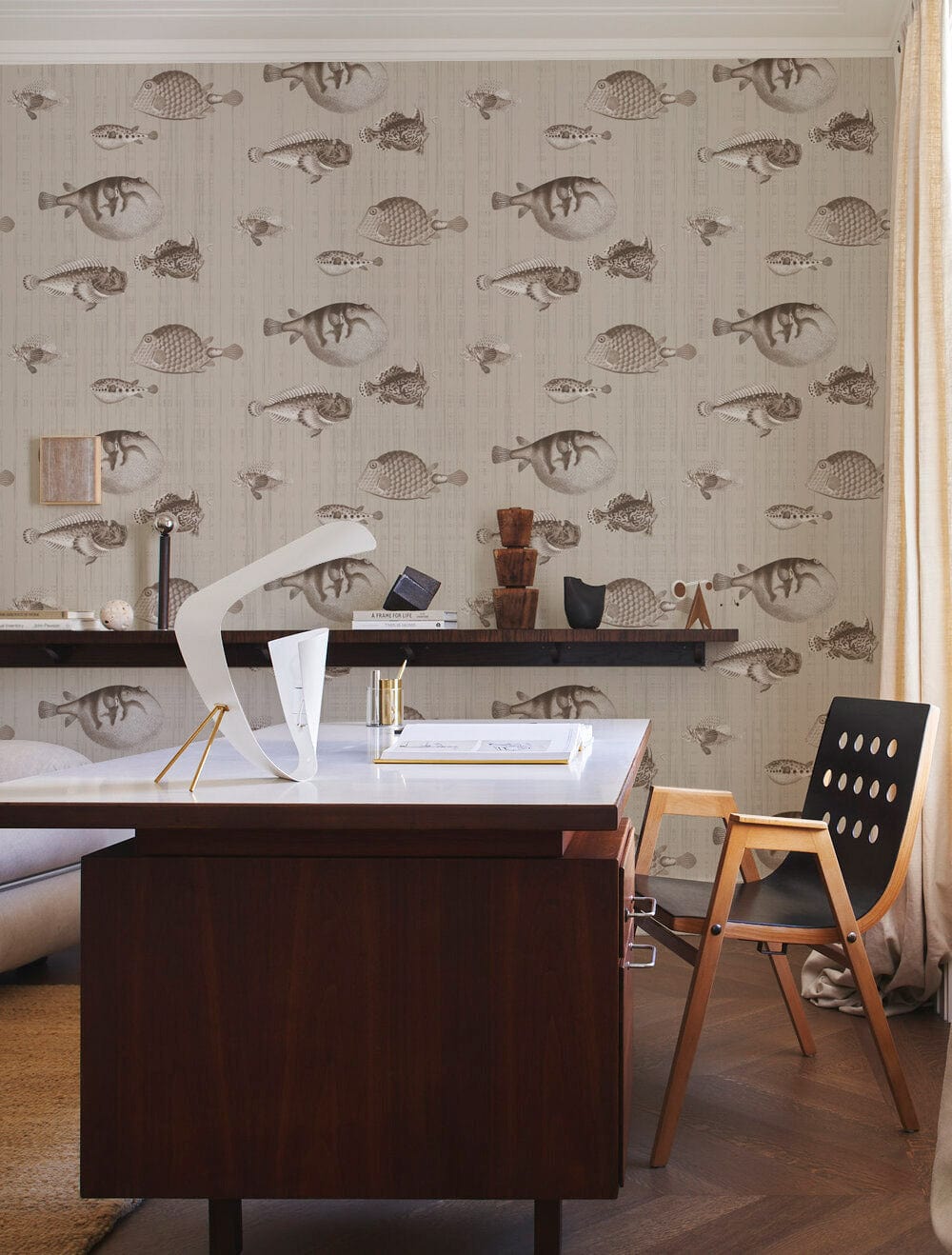 Dive into the serene underwater world with the Marine Fishes ll Wallpaper Mural. This intricate design captures the delicate beauty of marine life, featuring a refined arrangement of fish across a subtle, textured background. Ideal for adding a touch of sophistication to any space, this mural invites a calm and timeless elegance that complements a wide range of interior styles.