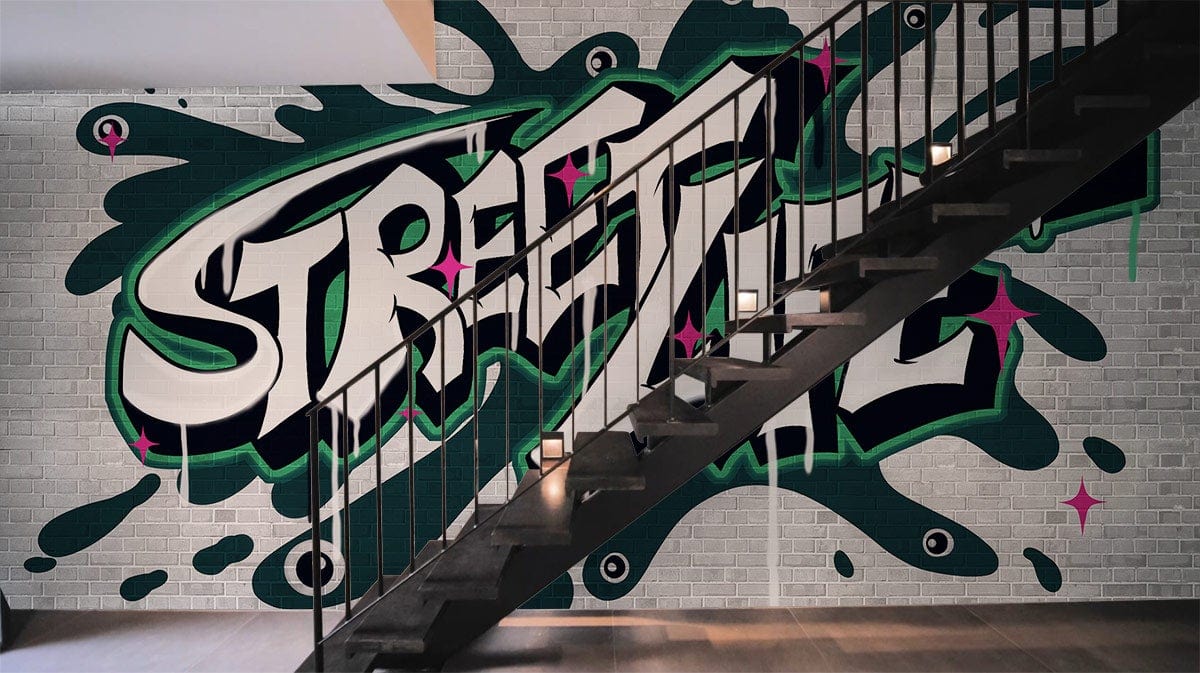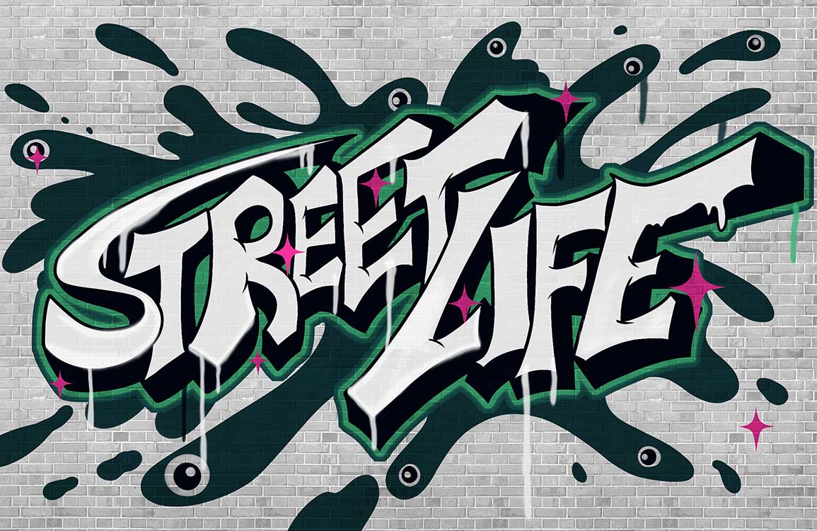 Immerse your space in the dynamic energy of urban culture with the Street Life Wallpaper Mural. Featuring bold street art motifs set against a textured brick backdrop, this mural captures the essence of metropolitan life. The intricate graffiti design, highlighted in rich green and vivid pink, offers a striking contrast, bringing a burst of creativity and modern edge to any room.