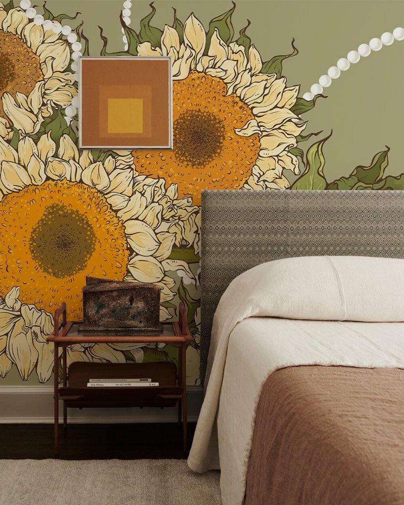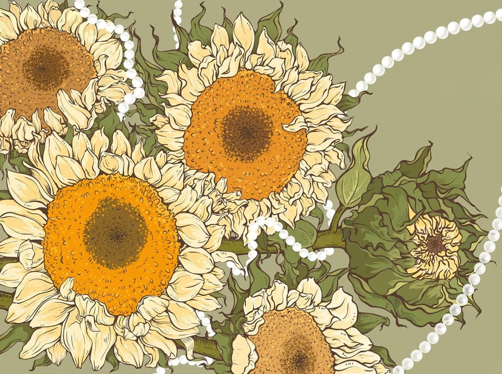 This Sunflower with Jewellery Wallpaper Mural captures a delicate harmony between nature and opulence. The intricate sunflower motifs, adorned with gleaming jewellery accents, create a visual symphony that balances elegance and artfulness. The rich tapestry of colours and textures offers a sophisticated charm, making it an exquisite choice for diverse interiors.