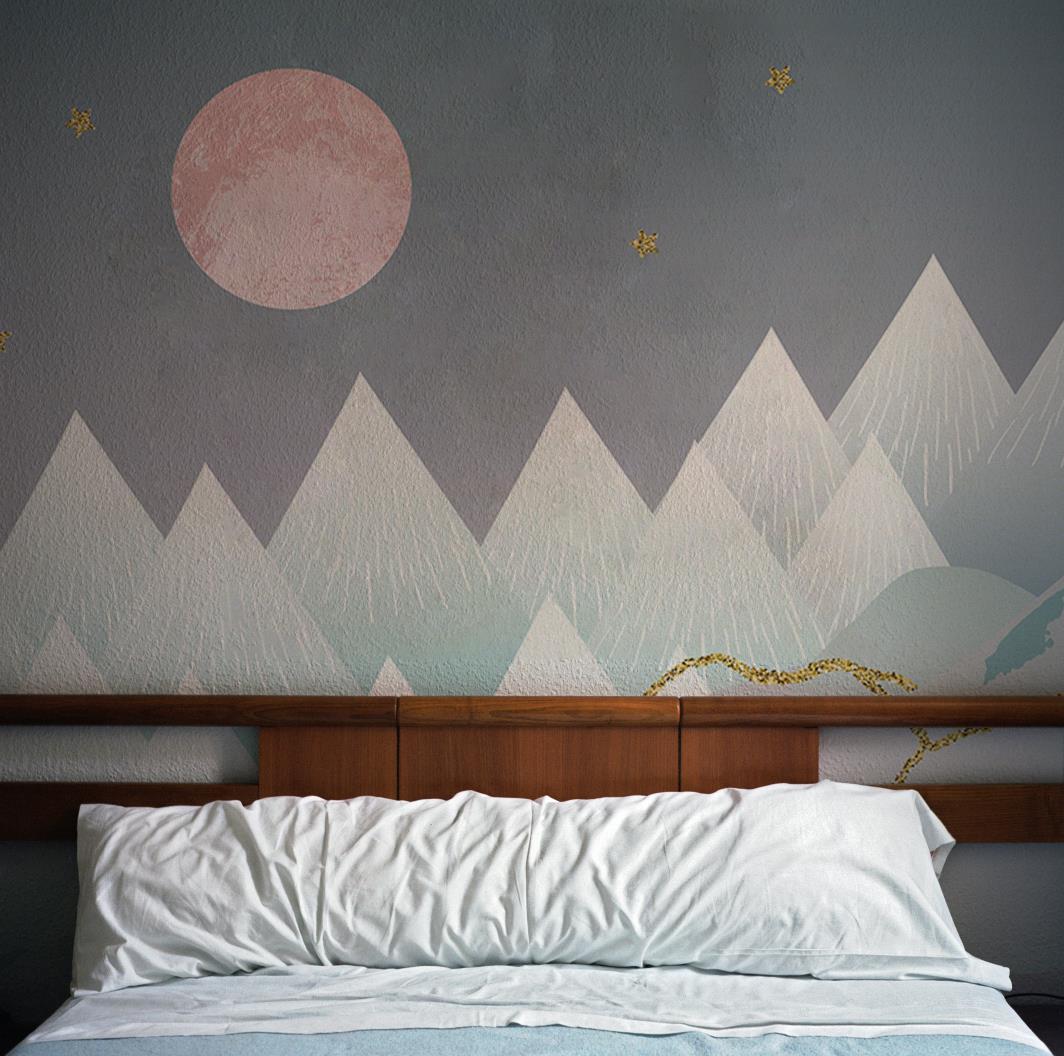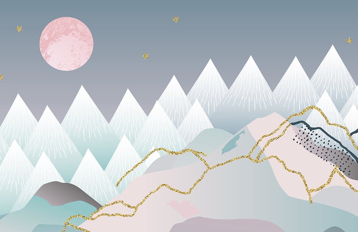 Embrace the serene elegance of nature with the Sunset Ombre Mountain Wallpaper Mural. This exquisite design captures the gentle interplay of dusk and dawn, showcasing a mountain range silhouetted against a dreamy ombre backdrop. Subtle hues of misty blue and blush pink create a harmonious blend, accentuated by delicate gold leaf textures that catch the eye. Perfectly suited for adding a touch of sophisticated tranquillity to any room, this mural seamlessly merges artistic flair with timeless aesthetics.
