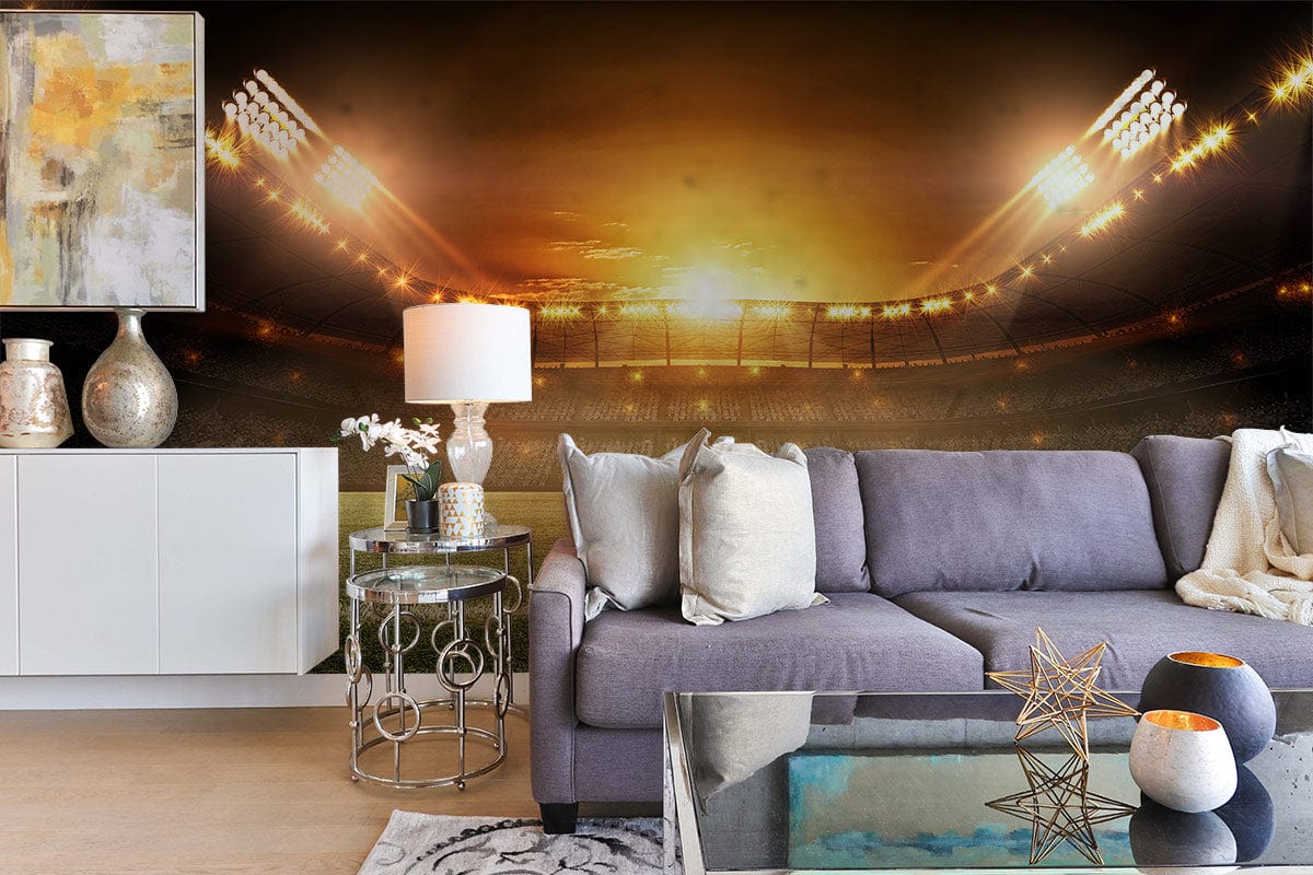 Immerse your space in the electric energy of the Supercoupe de Tunisie Wallpaper Mural. This stunning design captures the golden glow and expansive beauty of a stadium at sunset, combining artful illumination with the rich textures of a verdant playing field. A harmonious blend of light and perspective, this mural adds a dynamic yet sophisticated atmosphere to any room it graces.