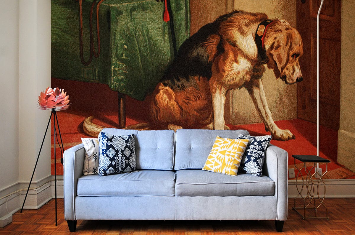 The Suspence Wallpaper Mural captivates with its vivid depiction of a contemplative dog, set against a backdrop of rich textures and nuanced tones. The intricate detailing evokes a sense of nostalgia, while seamlessly fitting into both contemporary and classic interiors. Ideal for creating a focal point, this mural imbues any space with charm and sophistication.