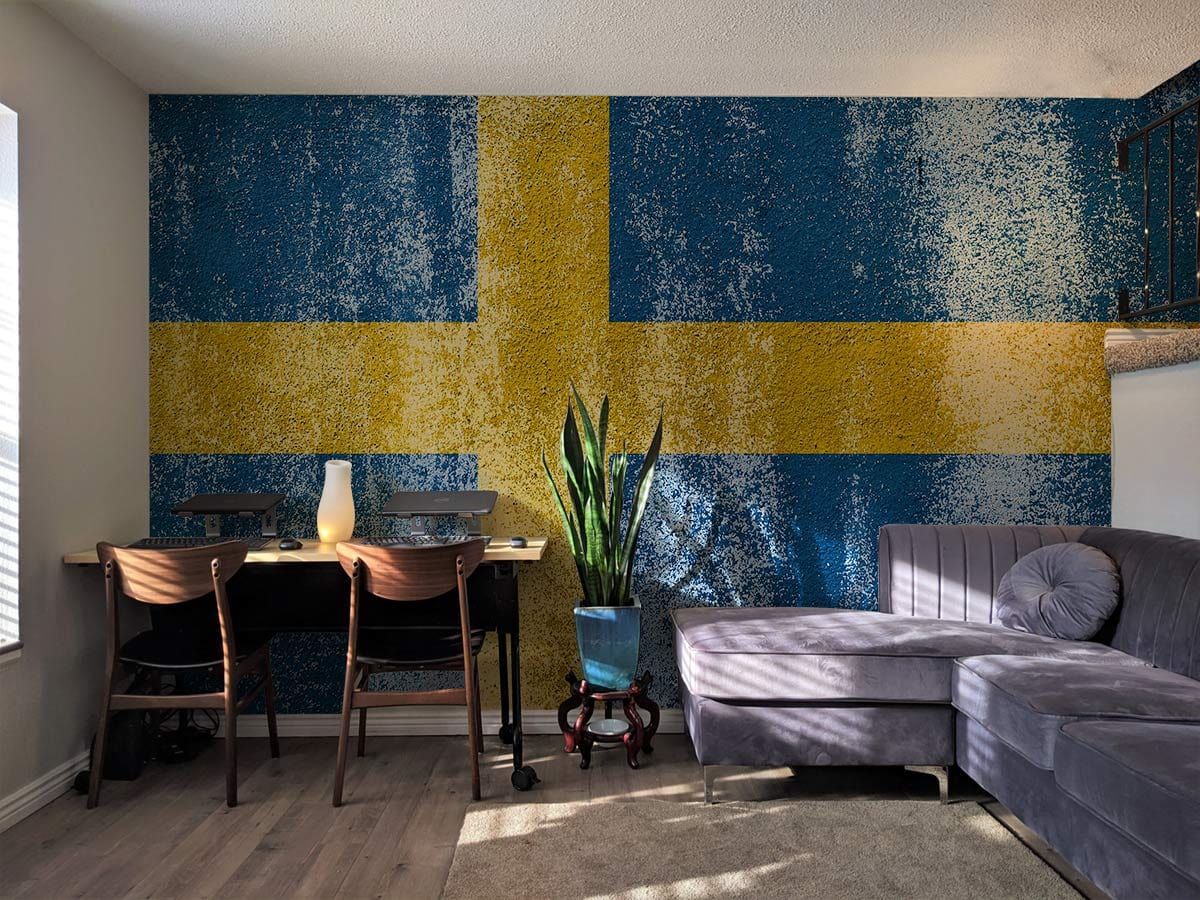 Swedish Flag mural wallpaper will add the perfect finishing touch to your kitchen or dining nook. This mural can be as subtle or as bold as you want it to be, with blue and yellow tones that pop against the worn-out concrete background. Guaranteed to make your heart really sing - this is one design that simply cannot fail. Show your patriotism and heritage by hanging up this Swedish flag mural on your home!