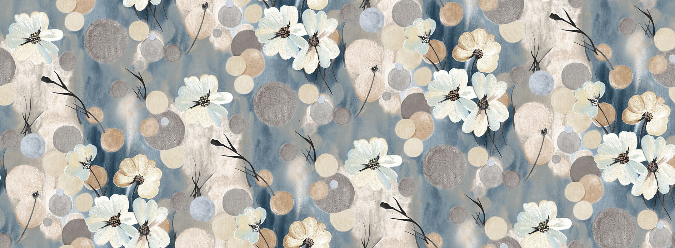 Step into a world of understated elegance with the Sweet Flowers Wallpaper Mural. Delicate blossoms artfully interlace with abstract circles, capturing an exquisite blend of nature and artistry. The subtle fusion of textures creates a soft ambience, making it a sophisticated choice for any interior. Perfectly versatile, this mural embodies timeless appeal, seamlessly fitting into various design contexts.