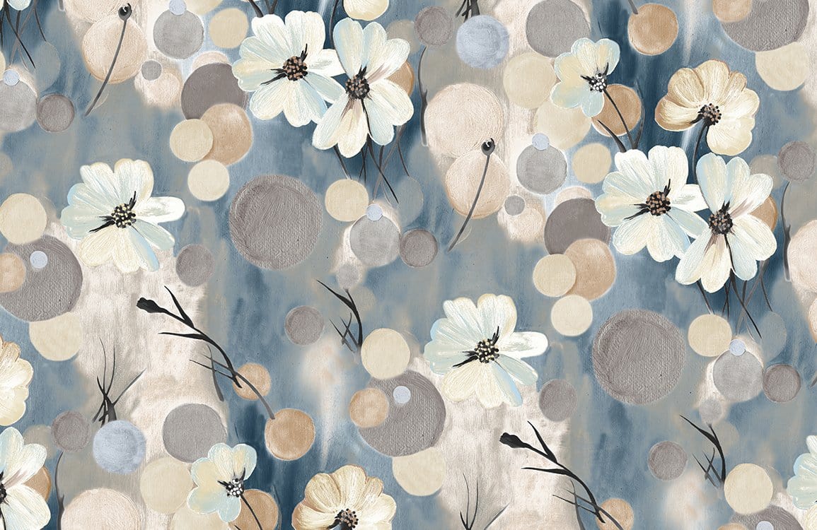 Step into a world of understated elegance with the Sweet Flowers Wallpaper Mural. Delicate blossoms artfully interlace with abstract circles, capturing an exquisite blend of nature and artistry. The subtle fusion of textures creates a soft ambience, making it a sophisticated choice for any interior. Perfectly versatile, this mural embodies timeless appeal, seamlessly fitting into various design contexts.