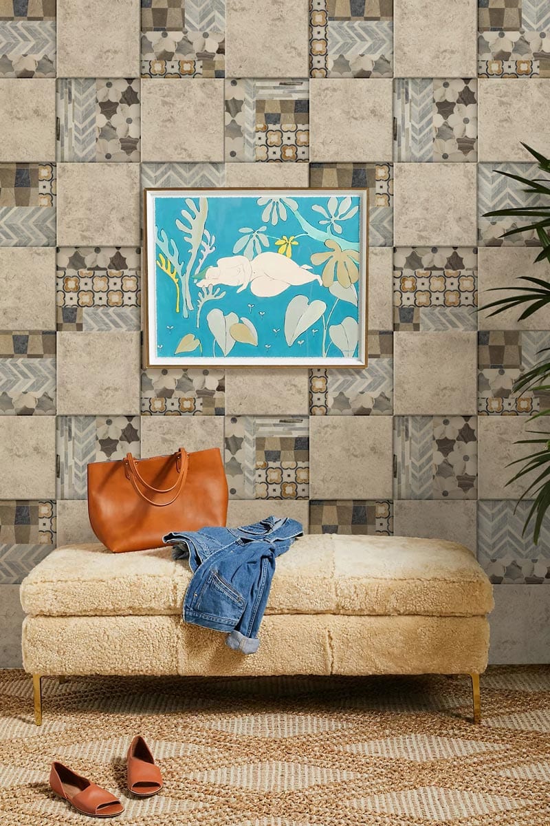 Create a soothing and serene space with our Texture Marble Wallpaper Mural. This contemporary wall mural displays alternating plain and patterned square tiles in light beige colour. The simple yet sophisticated look will allow this wall art to blend in easily with any type of decorating style. The easy-to-install wallpaper mural is removable, repositionable, and reusable, making it great for renters or those who are environmentally conscious. This mural is the perfect way to convert your room and create the look of expensive marble walls.