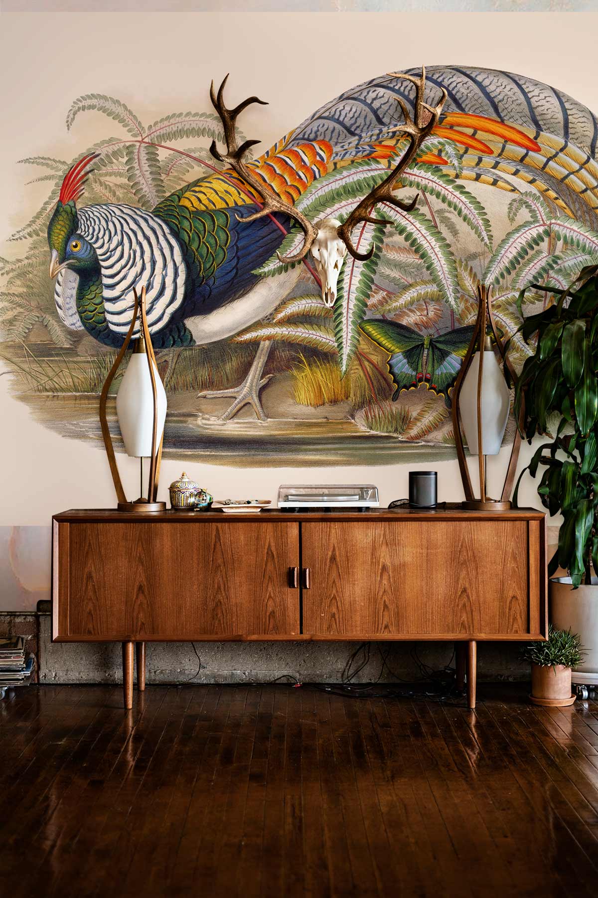 Unite your living space with nature while also creating an attractive focal point in your home with our Thaumalea Amherstiae Mural Wallpaper. Designed as a distinctive addition to any room, this gorgeous mural features the infamous Thaumalea Amherstia bird with its colourful feathers resting in between ferns in lush green shades. With its bold, contemporary design and striking pattern, Thaumalea Amherstiae is the perfect way to add elegance and modern style to your space while extending the beauty of your living area.