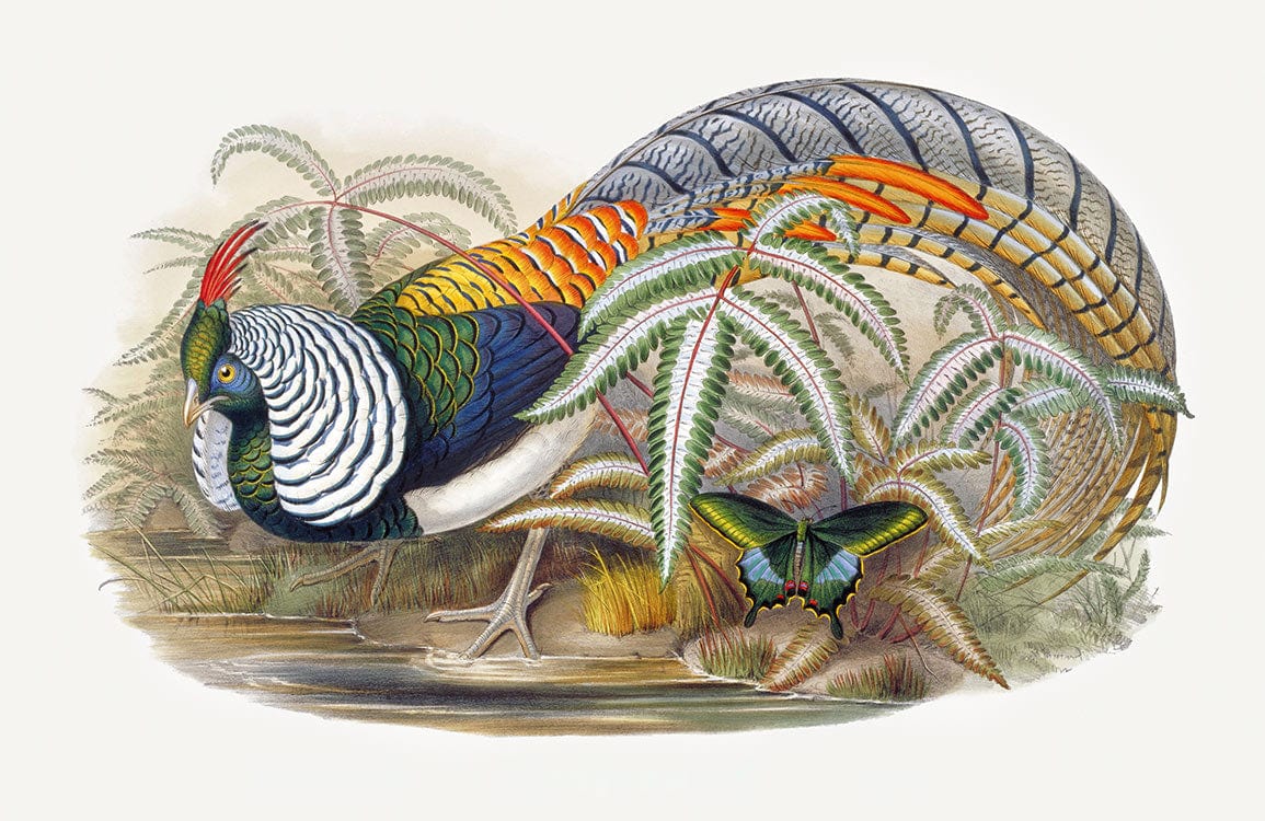 The Thaumalea Amherstiae Wallpaper Mural boasts a captivating design that draws the eye to its intricate portrayal of a pheasant amidst lush foliage. With vivid hues of emerald, gold, and a touch of crimson, this mural conveys a sense of timeless beauty and elegance. Ideal for creating a focal point in either a classic or contemporary setting, its exquisite detail and textured finish evoke a sophisticated ambience.