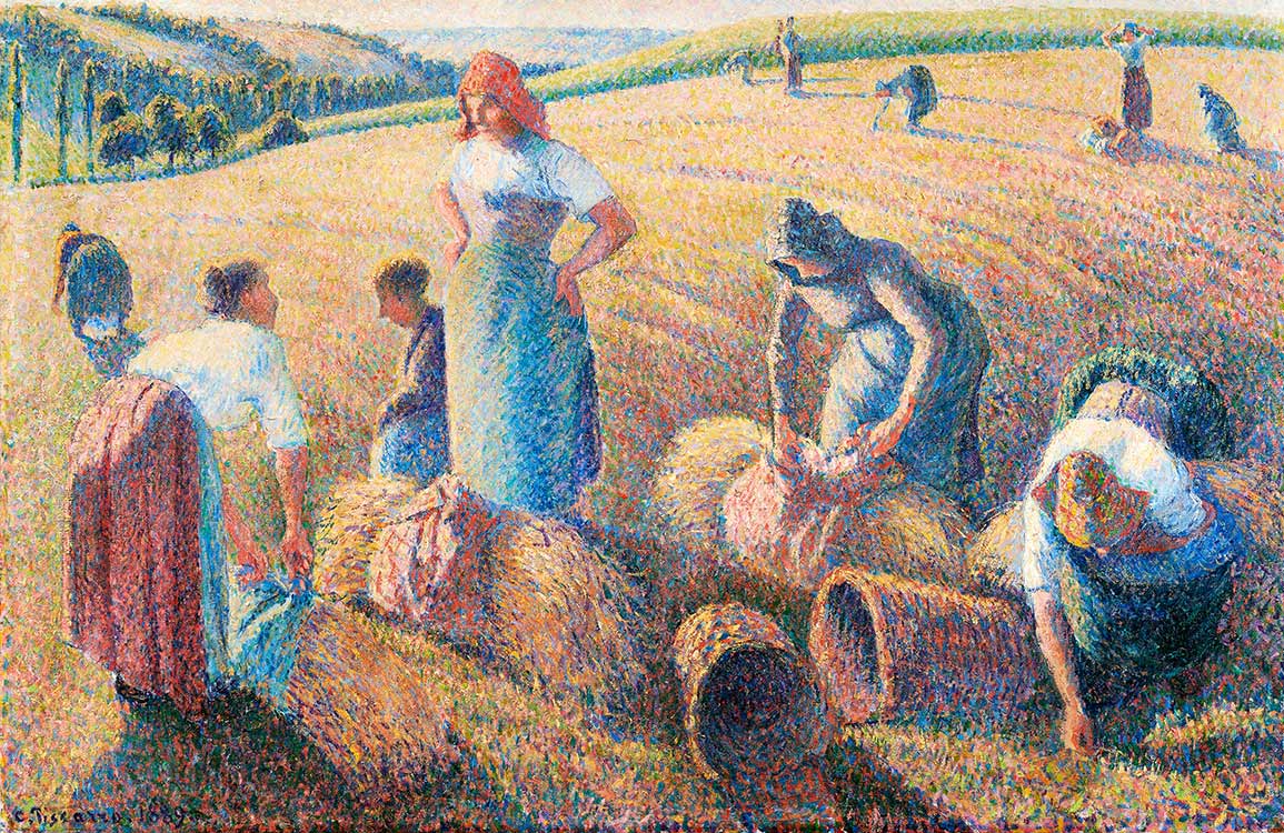 This famous painting The Gleaners was illustrated by Camille Pissarro. At first glance, Pissarro's paintings are very ordinary, without the enthusiasm and melancholy of Van Gogh, nor the sunshine and positivity of Gauguin, but after looking at it for a long time, you can gradually see the characteristics of Pissarro in silence. The colour match represents a kind of quiet view without extra explain but we can catch the content.