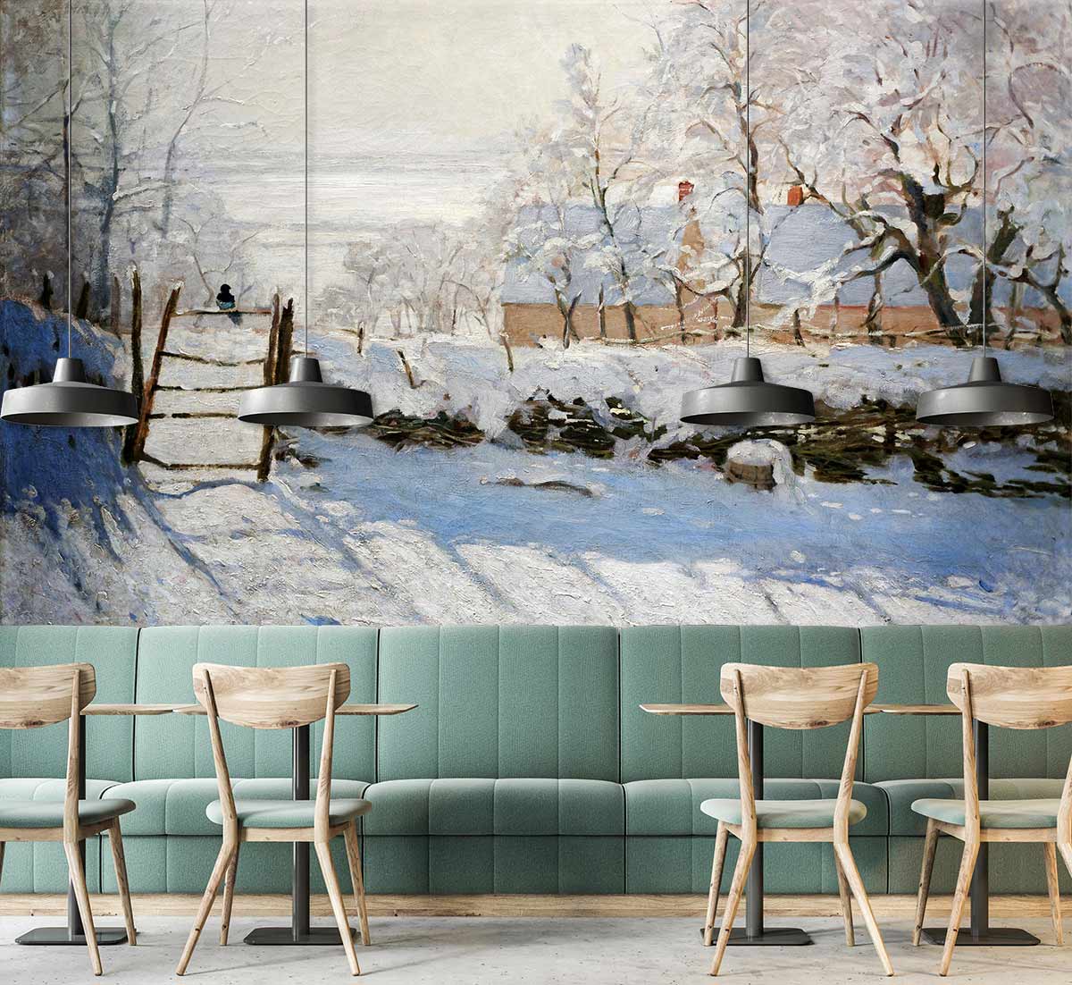 The Magpie Wallpaper Mural captures the serene elegance of a snow-draped landscape. With delicate brushstrokes defining frosted trees and a quaint cottage, this piece brings a sense of pastoral tranquility to any interior. The muted tones and exquisite detail blend seamlessly, creating a backdrop that is both sophisticated and inviting. Ideal for those seeking a touch of nature's stillness, this mural offers timeless allure to any living space.