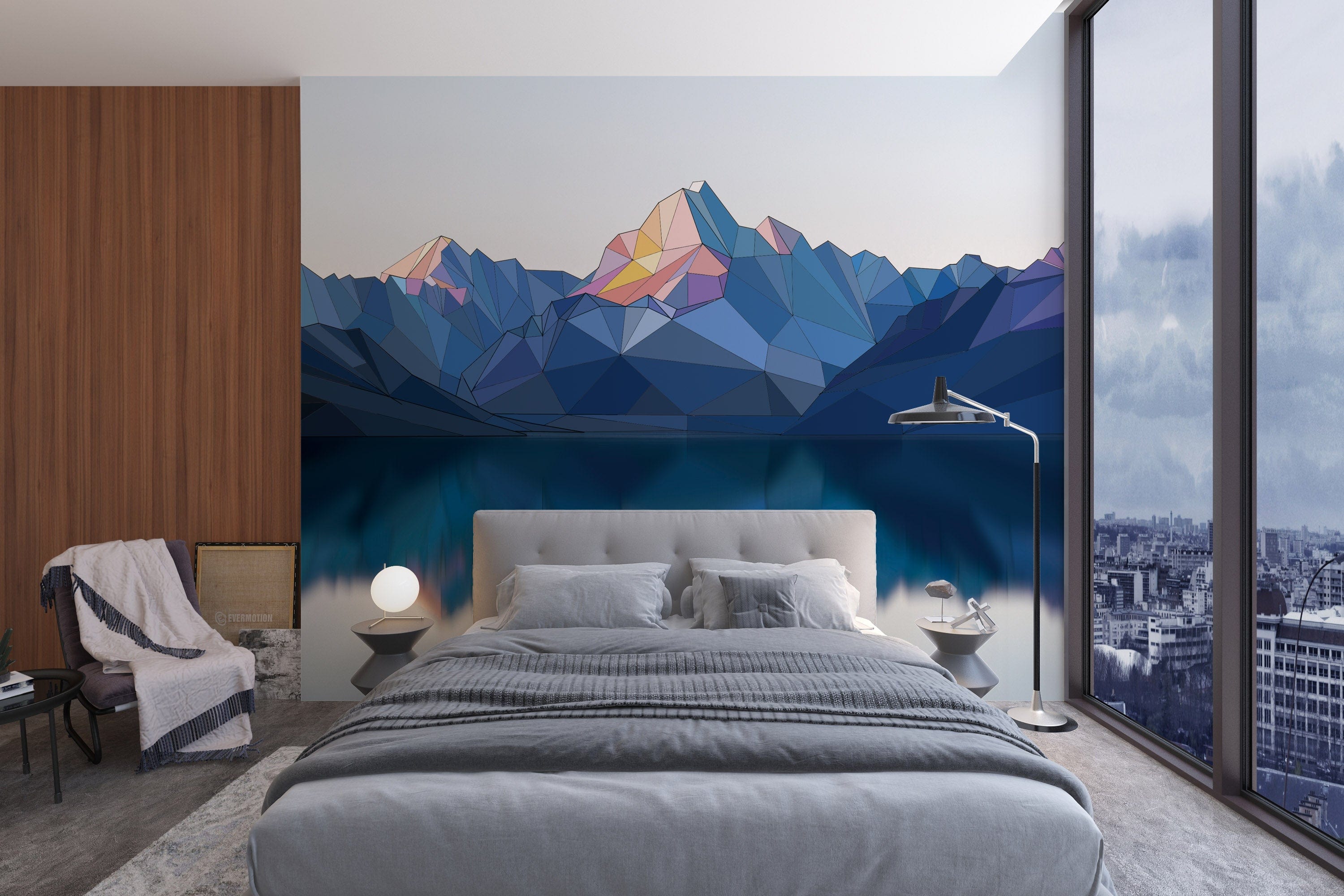 Immerse yourself in a serene landscape with this 3D Mountain Wallpaper Mural, where geometric peaks rise majestically above a tranquil mirrored lake. The modern artistic rendition, with its clean lines and subtle shading, evokes a sense of calm and grandeur, making it a perfect centrepiece for any room. Its ability to blend with multiple interior styles lends a timeless sophistication that suits both contemporary and classic settings.