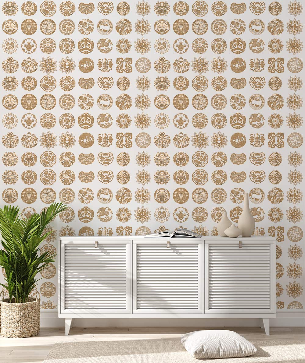 The Traditional Circle Pattern Wallpaper Mural captivates with its intricate motifs, weaving a tapestry of classic artistry. With delicate designs reminiscent of timeless elegance, this mural effortlessly blends into a variety of settings, offering a sophisticated charm. The subtle yet striking interplay of colours invites a warm and inviting ambiance, perfect for those seeking a refined aesthetic.