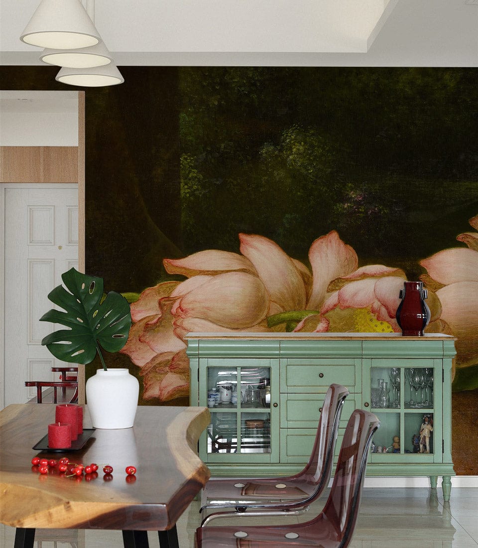 Invite the whispers of serenity into your home with the Tranquil Lotus Forest Mural Wallpaper. This exquisite design captures the delicate beauty of lotus blossoms nestled within a lush, serene forest. The artistry is evident in the detailed textures and subtle interplay of light and shadow, creating a scene that is both calming and visually enchanting. Ideal for adding a touch of timeless elegance, it seamlessly complements varied interior styles, offering a serene retreat within any room.